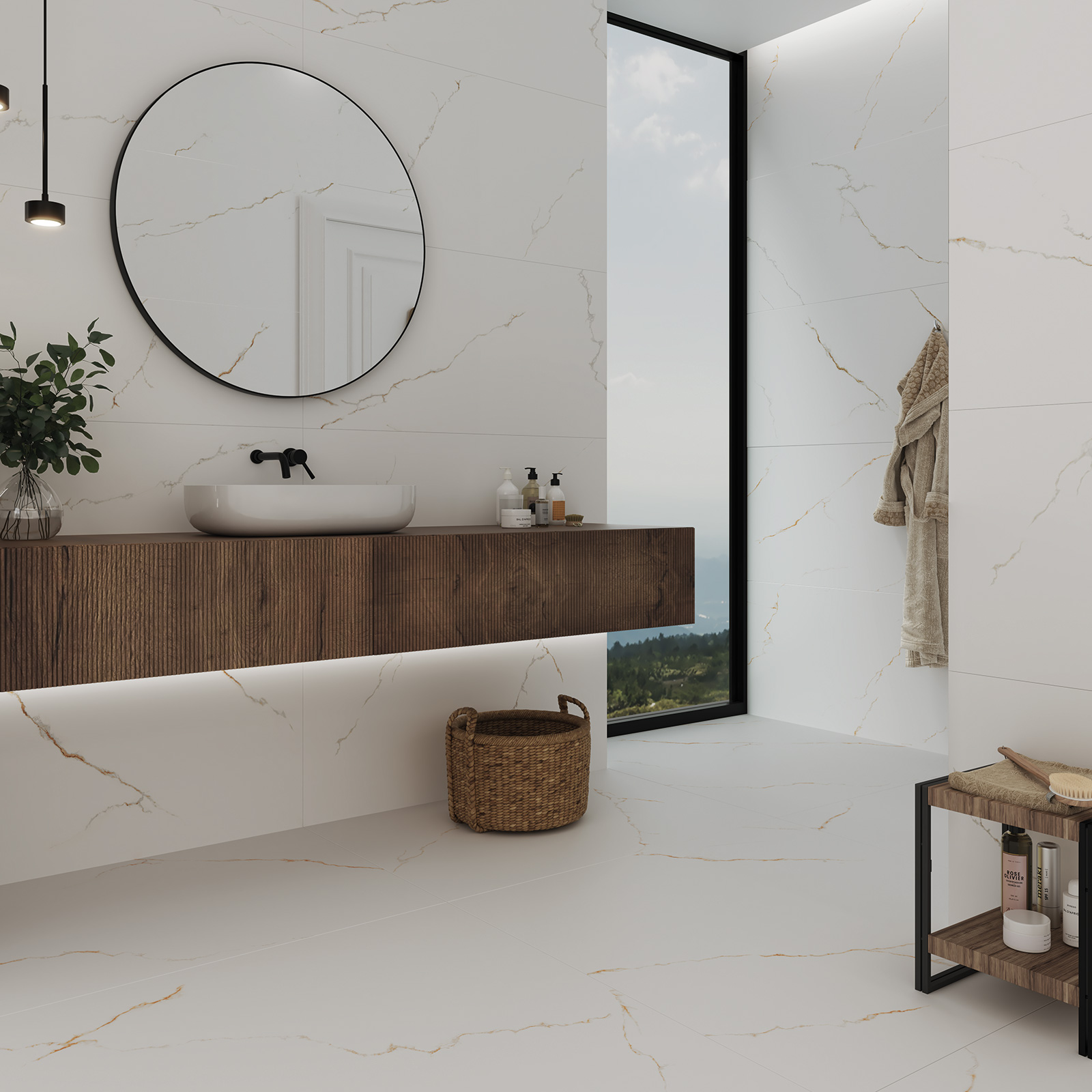 BODENFLIESE MARMOROPTIK THUILE WEIß SATIN 120X120 STN CERAMICA . Erste Wahl.