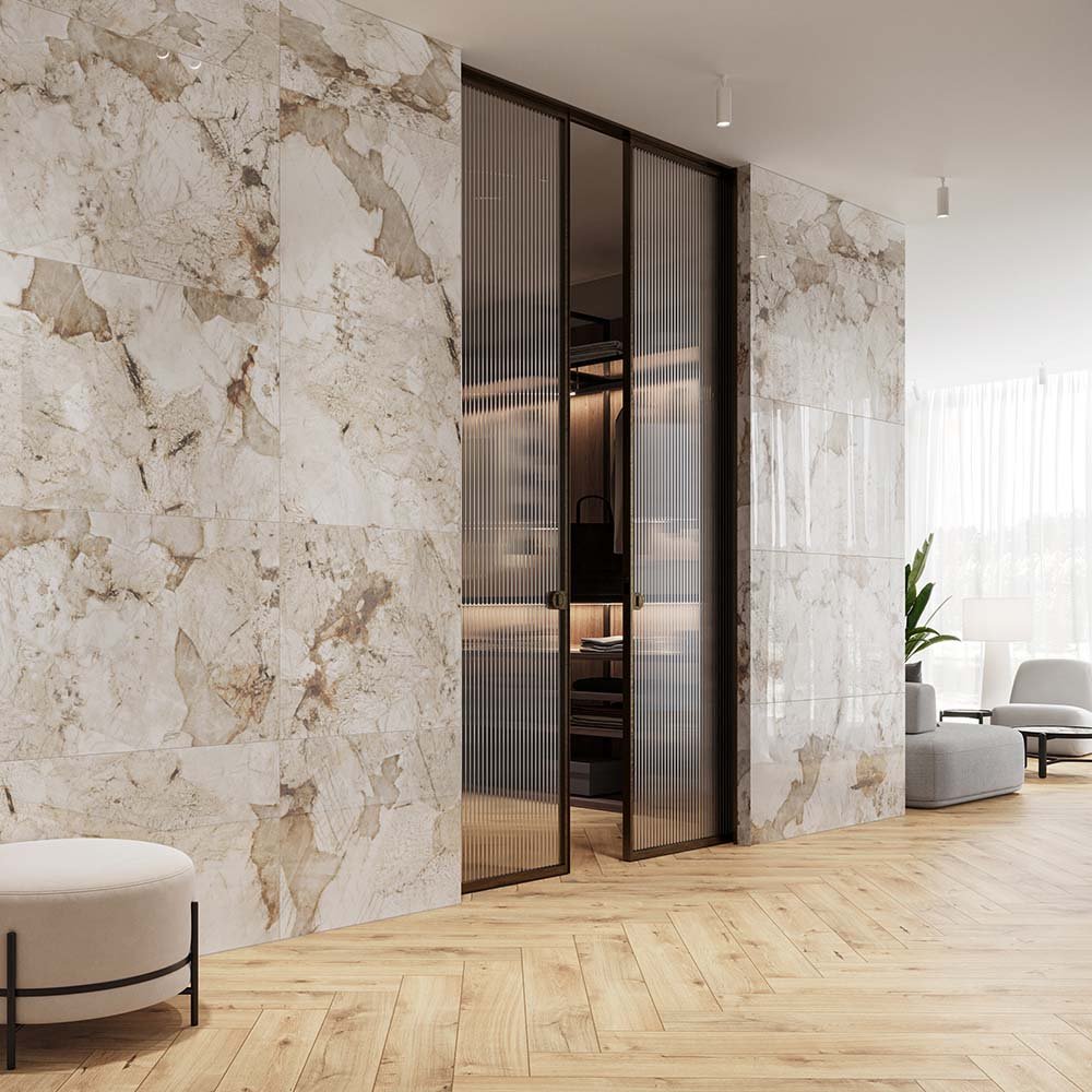 Dekoriertes Feinsteinzeug ist ein vielseitiges und sehr attraktives Verkleidungsmaterial, das im Innenbereich für Fußböden und Wände und im Außenbereich als frostsicherer Bodenbelag und Fassadenmaterial verwendet wird. Das ist sehr beständiges und multifunktionales matterial.