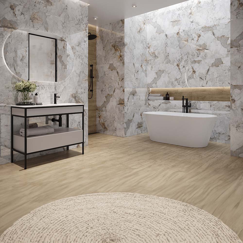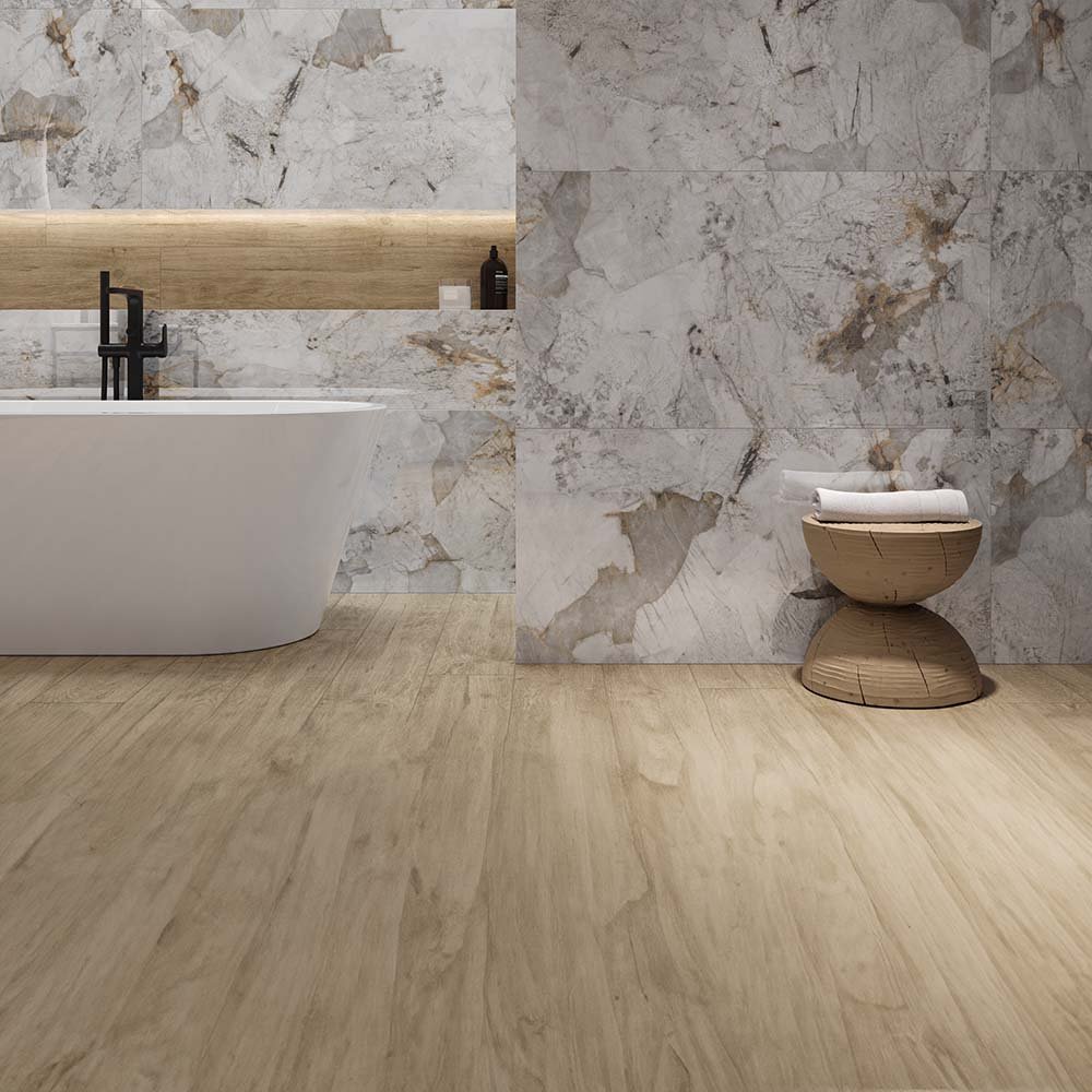 Dekoriertes Feinsteinzeug ist ein vielseitiges und sehr attraktives Verkleidungsmaterial, das im Innenbereich für Fußböden und Wände und im Außenbereich als frostsicherer Bodenbelag und Fassadenmaterial verwendet wird. Das ist sehr beständiges und multifunktionales matterial.