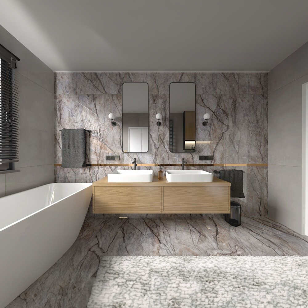 Dekoriertes Feinsteinzeug ist ein vielseitiges und sehr attraktives Verkleidungsmaterial, das im Innenbereich für Fußböden und Wände und im Außenbereich als frostsicherer Bodenbelag und Fassadenmaterial verwendet wird. Das ist sehr beständiges und multifunktionales matterial.