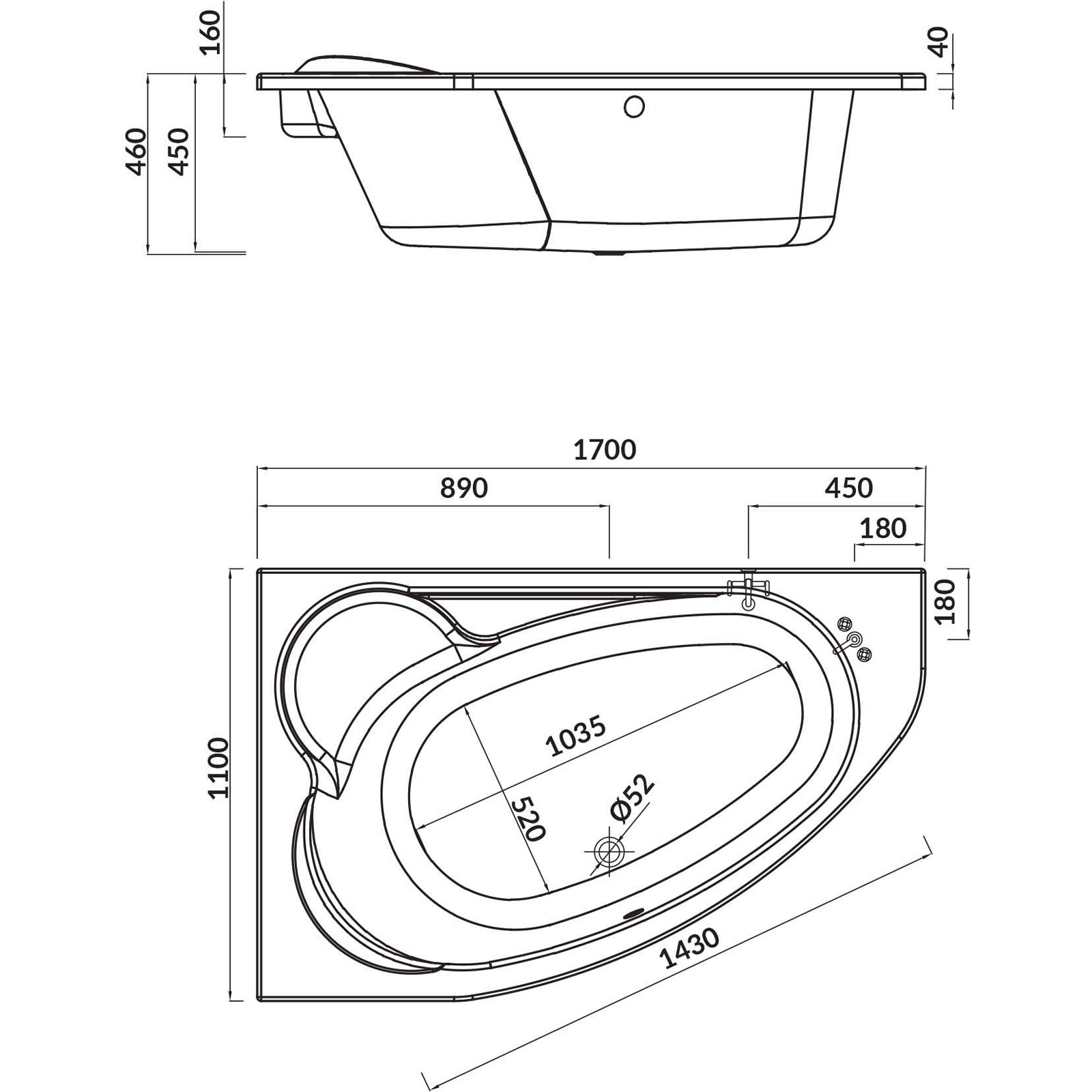 | Lage des Badewannenablaufs: | Zentraler Abfluss, an der Längsseite |