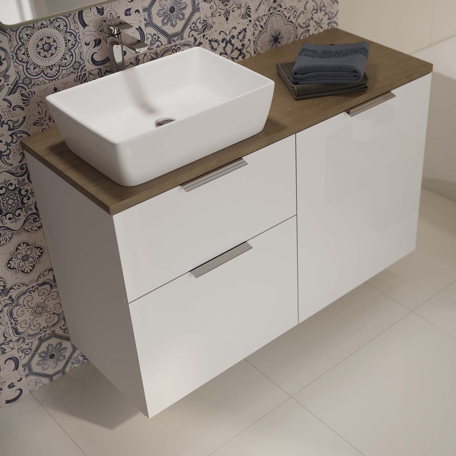 Aufsatzwaschbecken CITY 60 rechteckig mit Keramikstopfen. Das keramische Waschbecken CITY 60 unterstreicht perfekt den modernen Stil des Bades. Mit seiner schlichten, rechteckigen Form und seinem eleganten Design fügt er sich perfekt in die übrige CITY-Kollektion ein. Das Waschbecken ist für die Montage auf einem Möbelstück oder einer Arbeitsplatte vorgesehen.