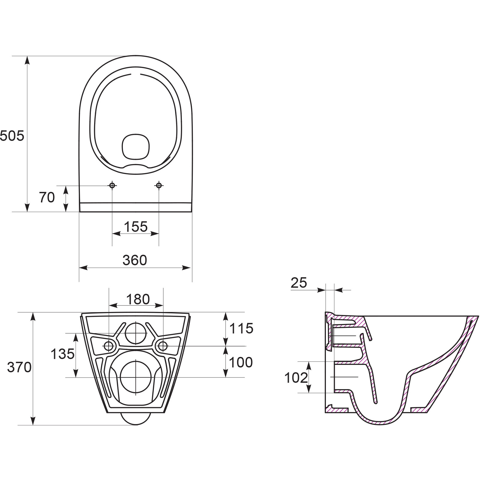 | Typ der Schüssel: | Randloses WC-Becken |