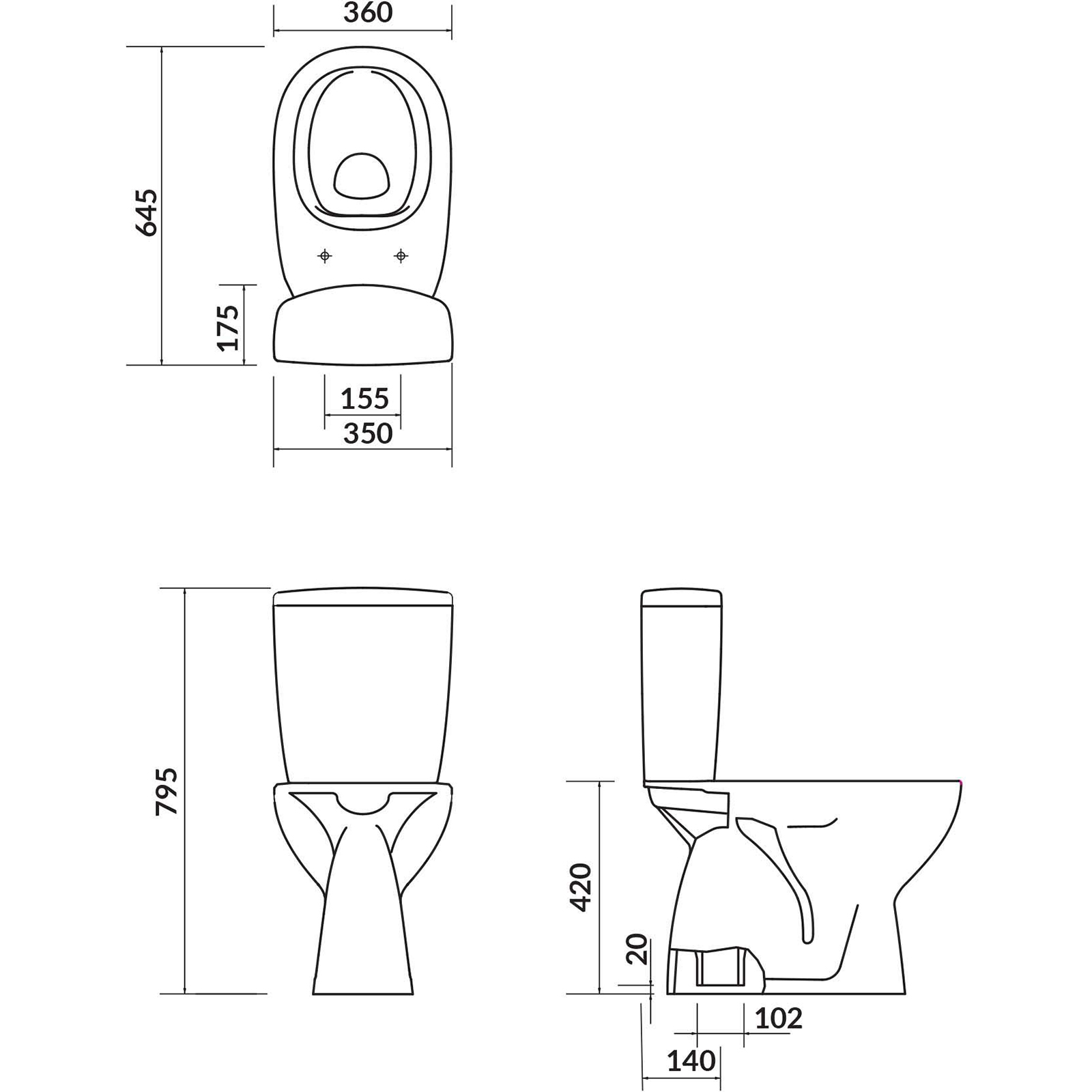 | Breite des WC-Beckens: | 64,5 cm |