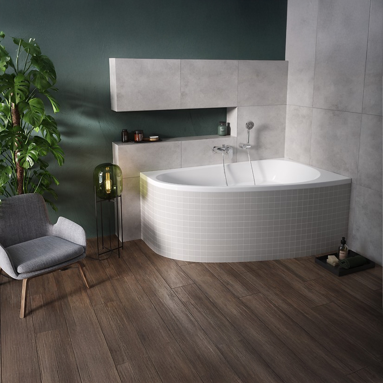 Für optimalen Nutzungskomfort sorgt die Badewanne JOANNA NEW 160 durch ihre halbrunde Form, dank der der Innenraum durch seinen großen Nutzraum beeindruckt. Für noch mehr Komfort ist die Badewanne mit einer profilierten Rückenzone und abgesenkten Armlehnen ausgestattet. Für eine hohe Funktionalität sorgt auch die breite Ablagefläche, ein idealer Ort für Badekosmetik, die immer griffbereit sein sollte. Mit verstellbaren Füßen können Sie die richtige Höhe einstellen. Die Badewanne ist für den Linkseinbau geeignet. Die Frontblende kann selbst fertiggestellt werden.