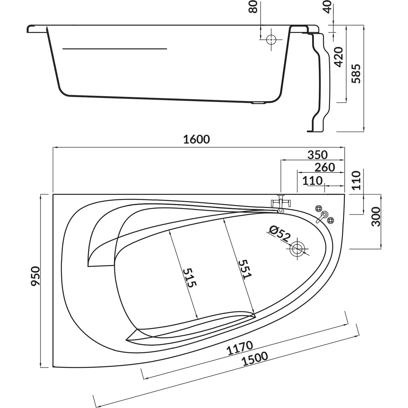 Eckbadewanne 42 joanna neu links 160x95 cw 215.