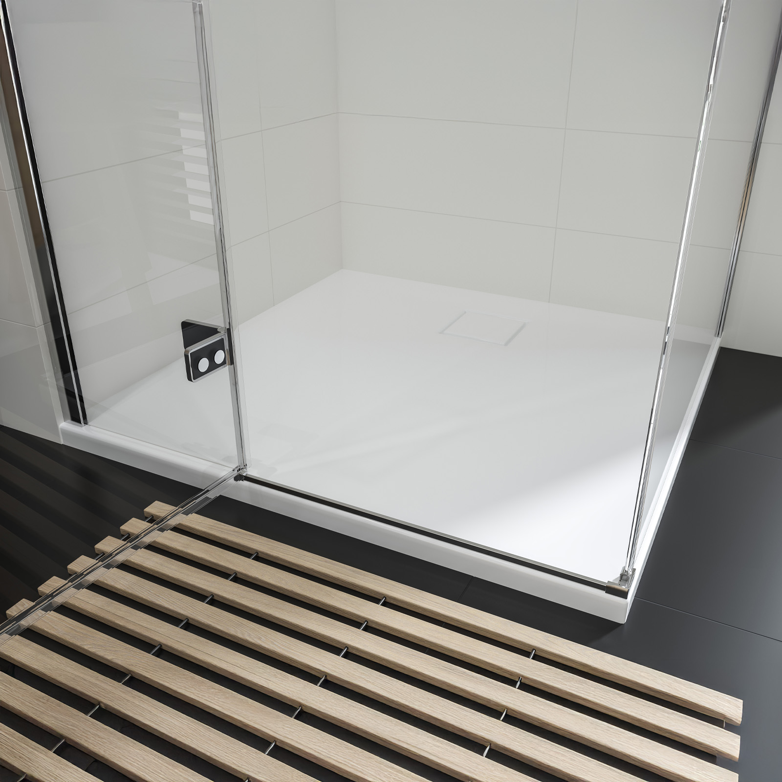 CERSANIT JOTA Duschkabine rechts chrom 80x80 mit Duschwanne TAKO slim grey matt S601-144