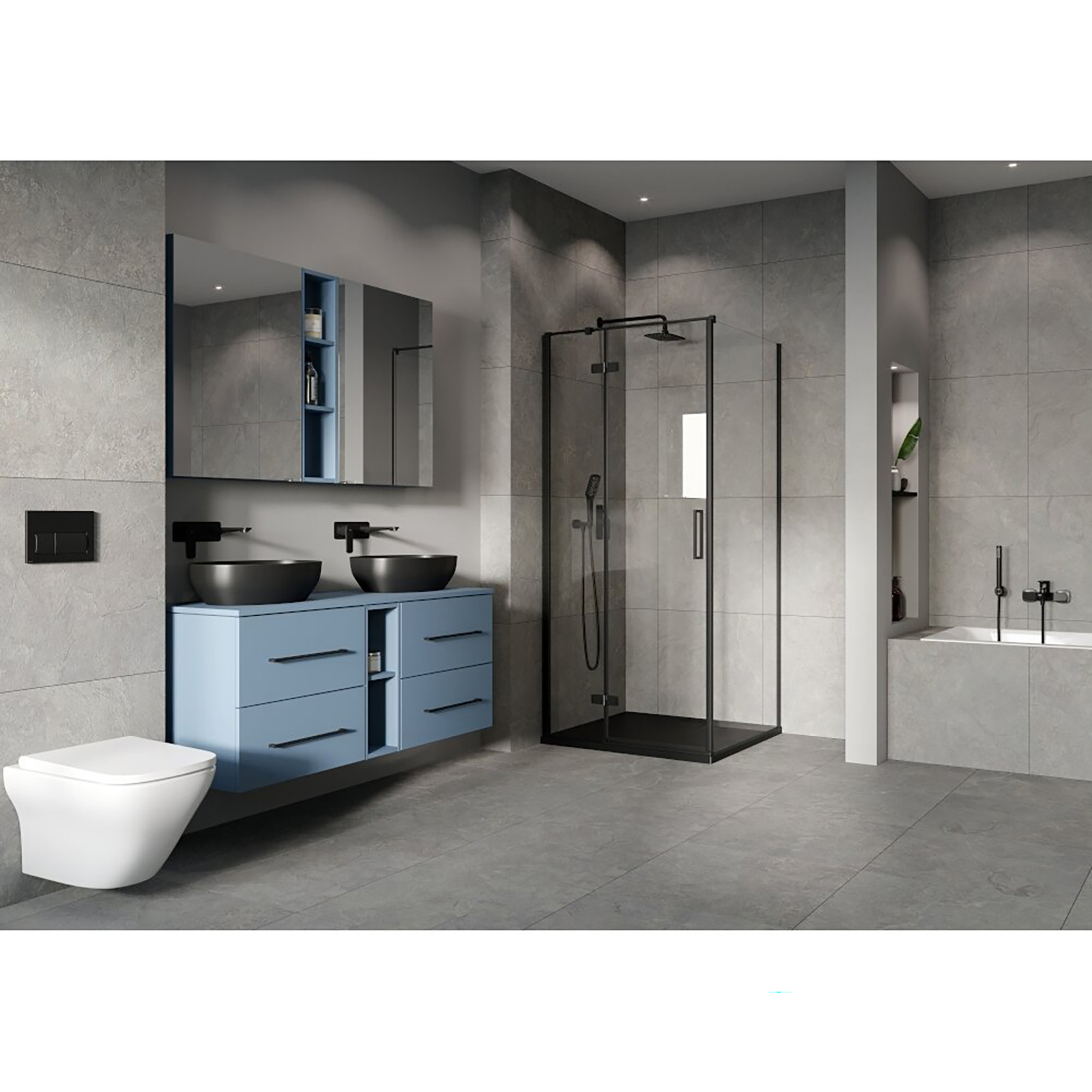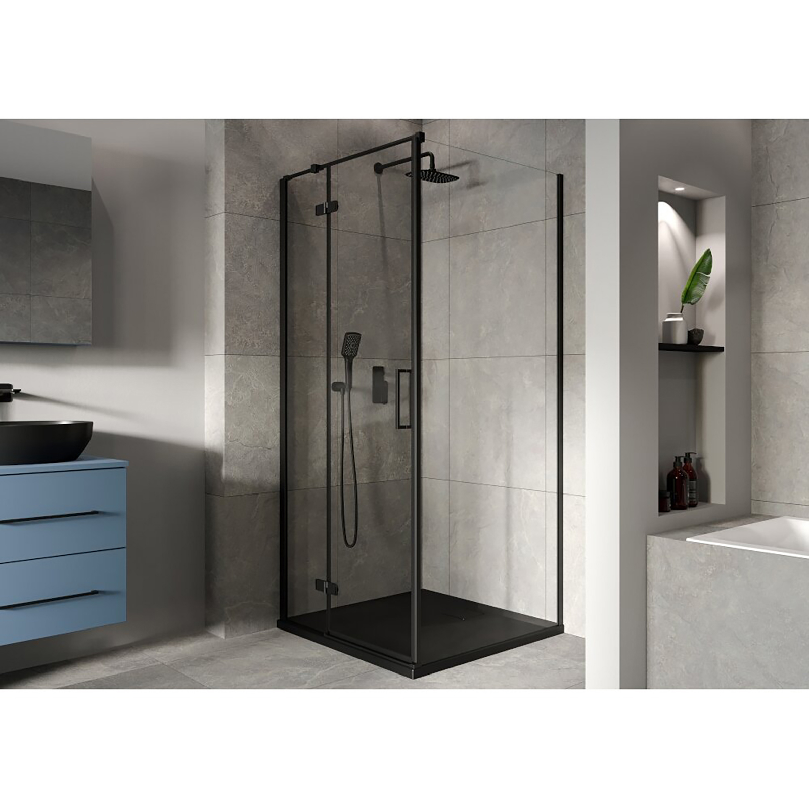 CERSANIT JOTA Duschkabine links schwarz 80x80 mit Duschwanne TAKO slim grey matt S601-329