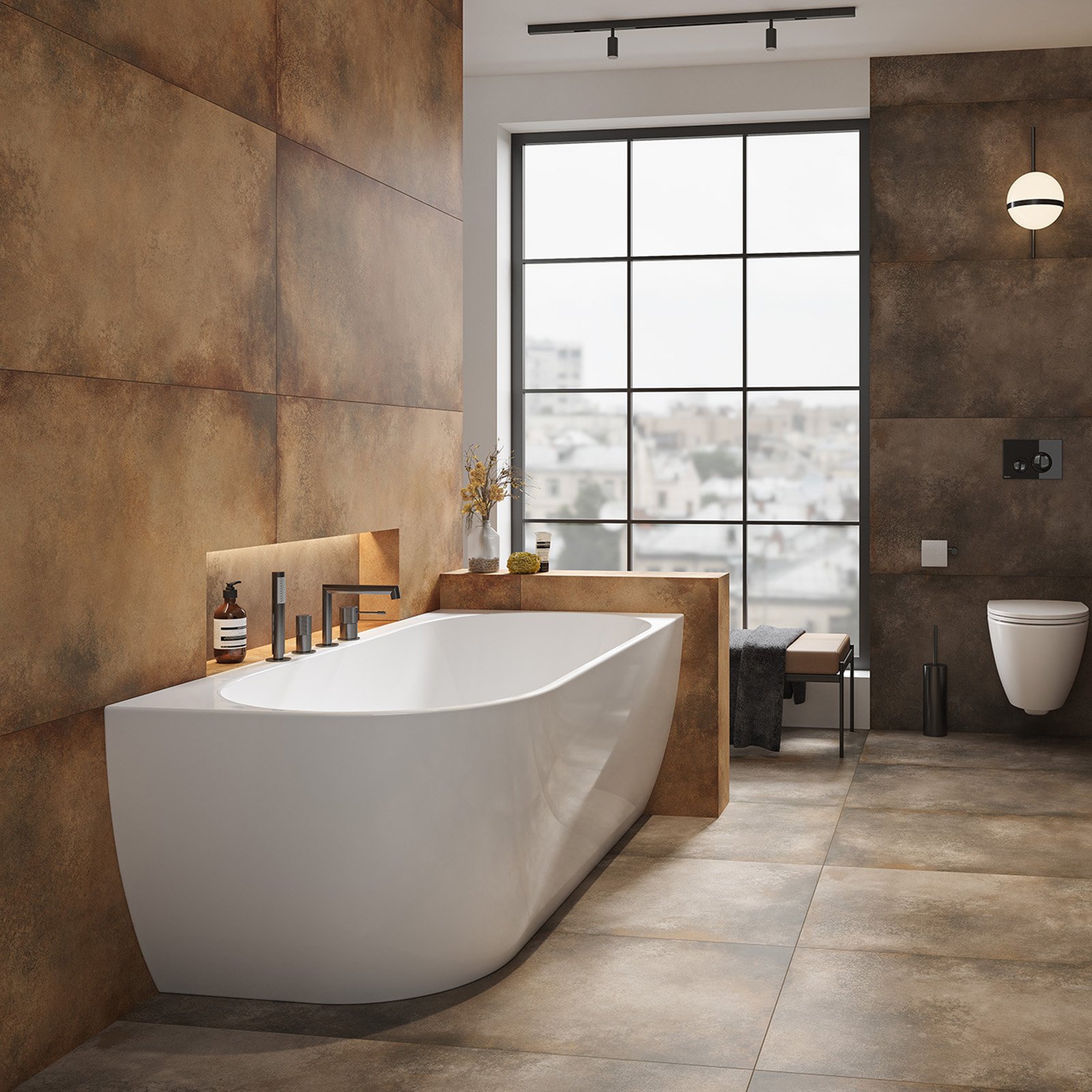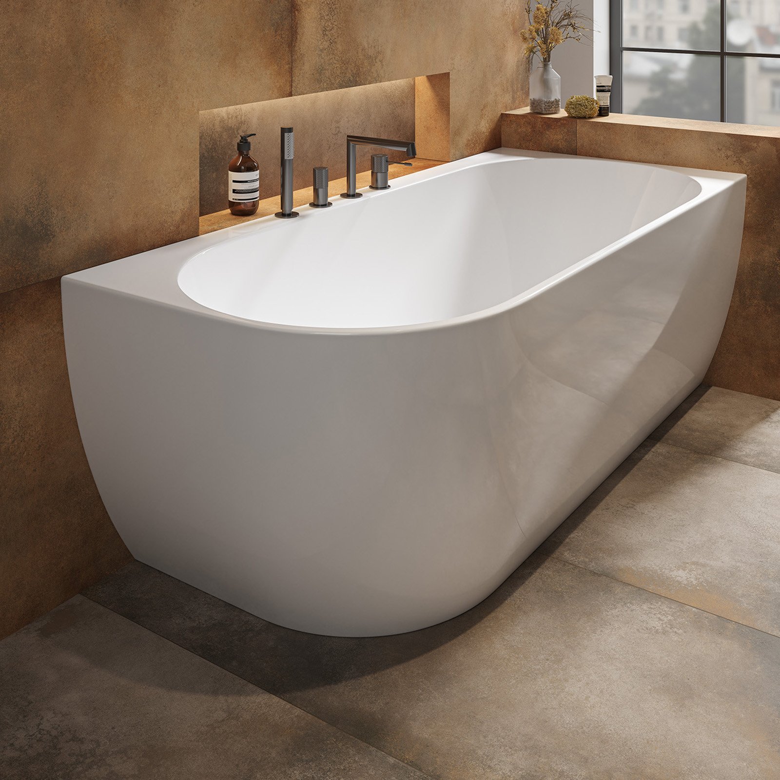 Die freistehende GARDA-Eckbadewanne ist eine Lösung für alle, die die monolithische Schönheit einer freistehenden Badewanne mit einem funktionalen Aspekt bei der Anordnung des Badezimmerraums verbinden möchten. Eine freistehende, wandmontierte Badewanne ermöglicht die Verwendung sowohl wandmontierter als auch von Badewannenarmaturen – es ist möglich, Löcher in den Badewannenrand zu bohren. Das Produkt verfügt außerdem über einen bequemen Platz für Badeutensilien in Form eines bequemen Regals neben der Wand. Für die Herstellung des Produkts wurde Acryl von ausgezeichneter Qualität verwendet – ein Material, das das Geräusch des aufschlagenden Wassers dämpft und die Oberfläche der Badewanne warm und angenehm berührt. Die angenehme Badetemperatur hält länger. Neben ihrer robusten Bauweise zeichnet sich die freistehende Acrylbadewanne durch ihr Gewicht aus, das geringer ist als das von Konglomeratprodukten. Das Set enthält einen Klick-Klack-Siphon in Weiß und einen Rahmen mit verstellbaren Beinen.