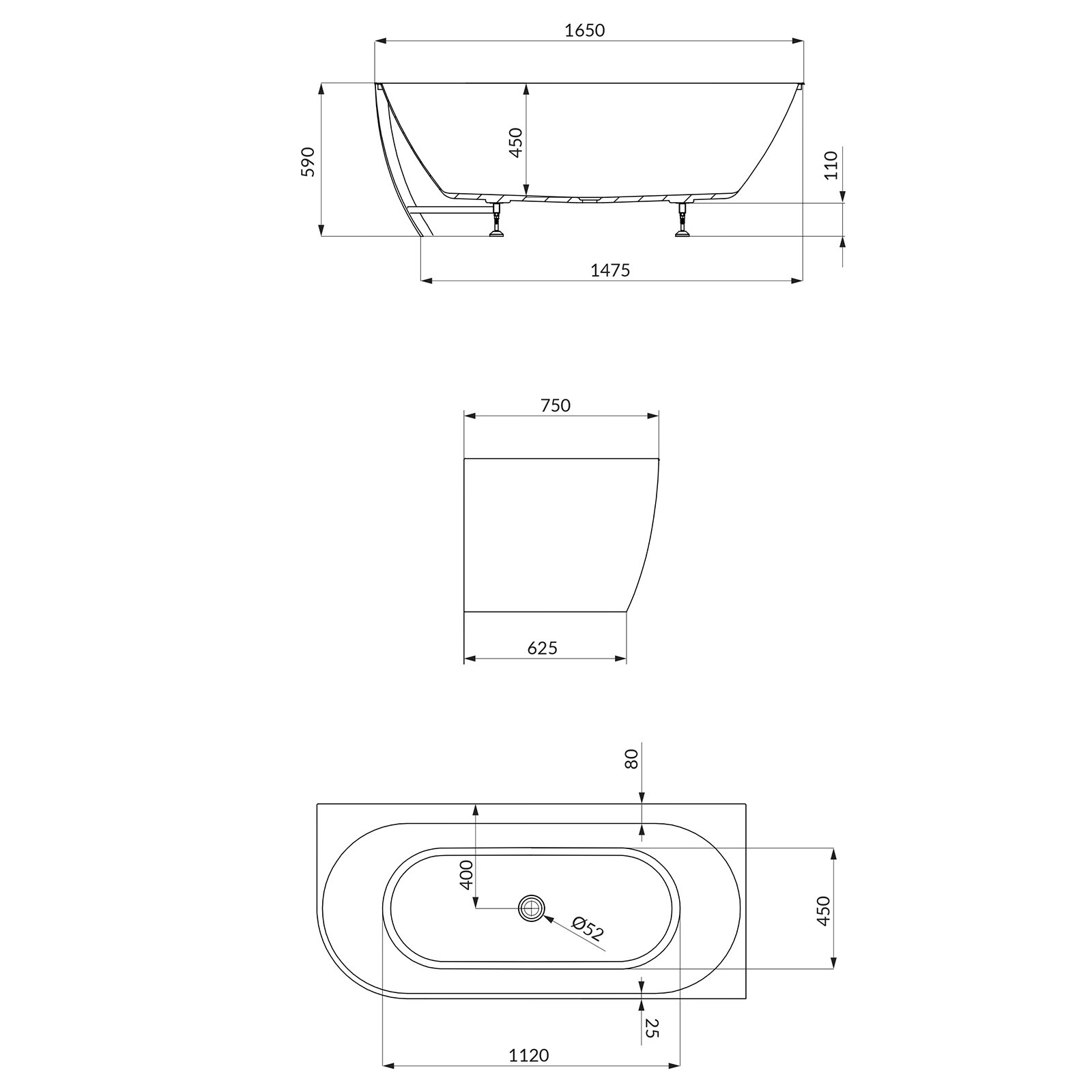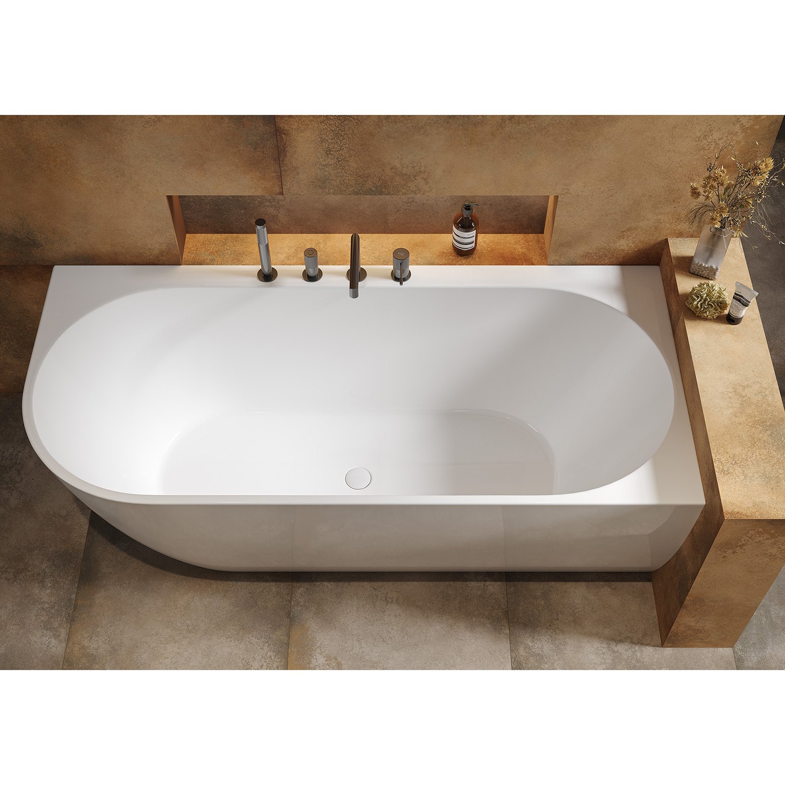 Freistehende Badewanne GARDA-Ecke rechts weiß 165x75.