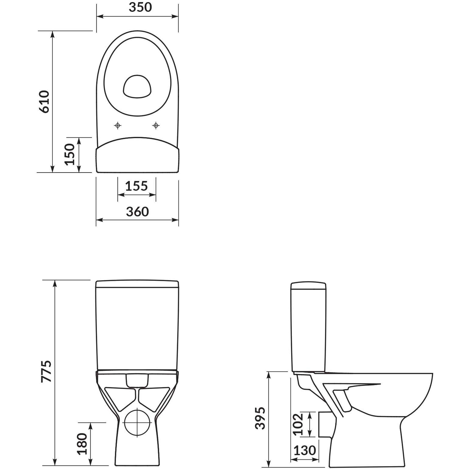 Das abgerundete PARVA Kompakt-WC ist mit der innovativen CleanOn-Technologie ausgestattet, die durch das Entfernen des Innenflansches dafür sorgt, dass die gesamte Oberfläche des Beckens beim Spülen gründlich gereinigt wird. Die Kompaktanlage verwendet ein 3/5-Liter-Wasserspülsystem. Er hat einen horizontalen Abfluss und einen Wasseranschluss an der Seite des Tanks. Außerdem gibt es ein antibakterielles Duroplastbrett, das mit einer Freifall- und Easy-Release-Funktion ausgestattet ist.