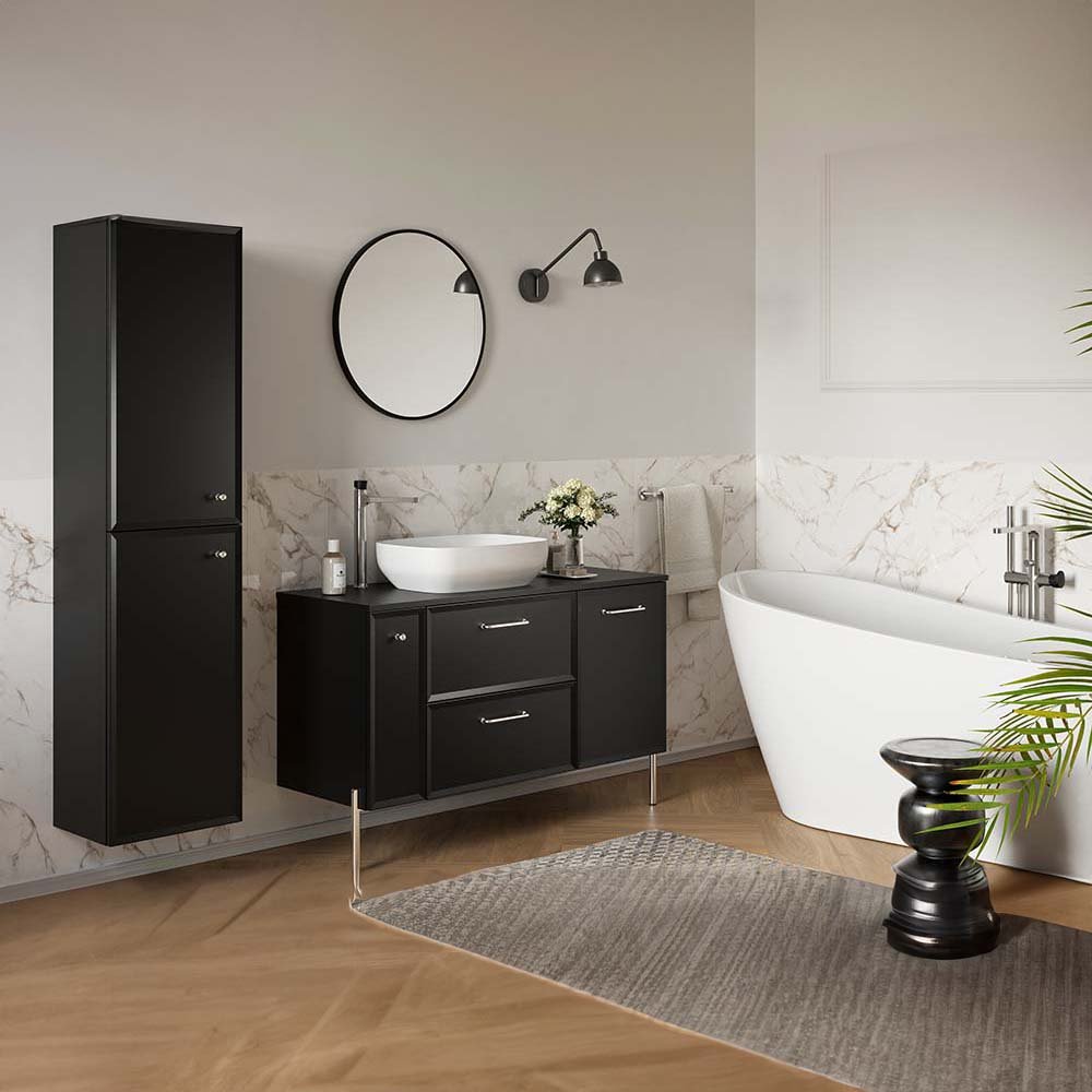 Die Kollektion MILOS by Cersanit ist die Quintessenz von Klassik und Stil, geschaffen für Liebhaber eleganter Innenräume. Er eignet sich perfekt für geräumige Badezimmer, in denen anspruchsvolles Design mit Ästhetik und Funktionalität einhergeht. Möbelaccessoires in Gold, Silber oder Schwarz, die perfekt zu den Fronten in Schwarztönen passen, bilden ein harmonisches und stilvolles Ganzes. Jedes Detail dieser Kollektion unterstreicht den eleganten Charakter des Interieurs und trägt zu seinem einzigartigen Charme bei. Die Kollektion MILOS by Cersanit besticht durch ihre eleganten und zeitlosen Farben, die perfekt zu modernen und klassischen Innenarchitekturen passen. Schwarz ist ein Synonym für Luxus und Eleganz, verleiht dem Interieur Charakter und harmoniert perfekt mit kontrastierenden Elementen.
