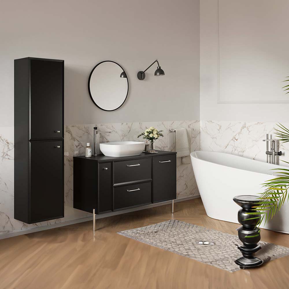 Die Kollektion MILOS by Cersanit ist die Quintessenz von Klassik und Stil, geschaffen für Liebhaber eleganter Innenräume. Er eignet sich perfekt für geräumige Badezimmer, in denen anspruchsvolles Design mit Ästhetik und Funktionalität einhergeht. Möbelaccessoires in Gold, Silber oder Schwarz, die perfekt zu den Fronten in Schwarztönen passen, bilden ein harmonisches und stilvolles Ganzes. Jedes Detail dieser Kollektion unterstreicht den eleganten Charakter des Interieurs und trägt zu seinem einzigartigen Charme bei. Die Kollektion MILOS by Cersanit besticht durch ihre eleganten und zeitlosen Farben, die perfekt zu modernen und klassischen Innenarchitekturen passen. Schwarz ist ein Synonym für Luxus und Eleganz, verleiht dem Interieur Charakter und harmoniert perfekt mit kontrastierenden Elementen.