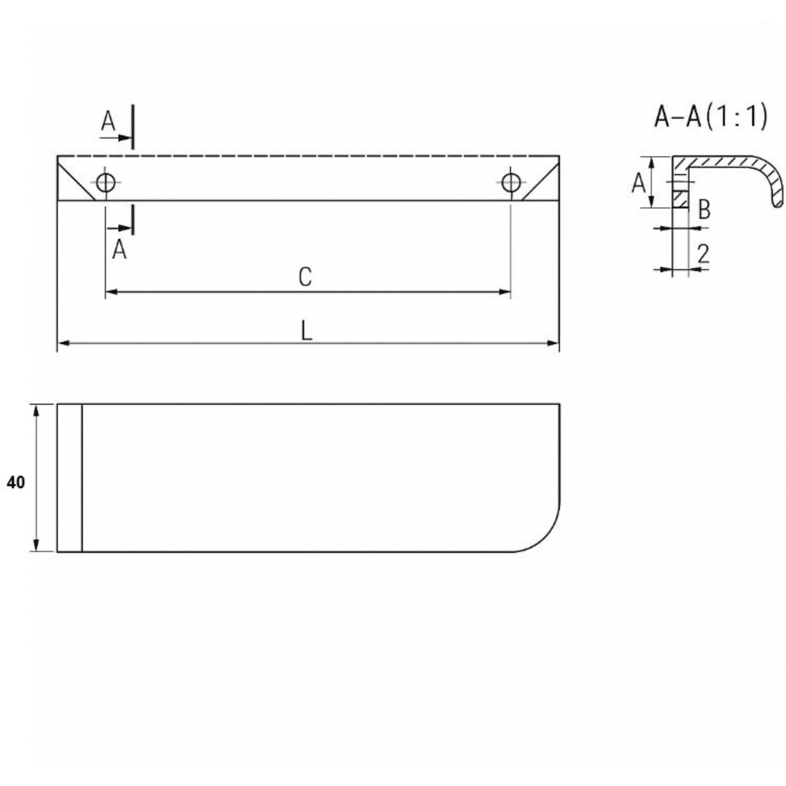 CERSANIT Möbel-Griff 5 cm silberner S1044-012