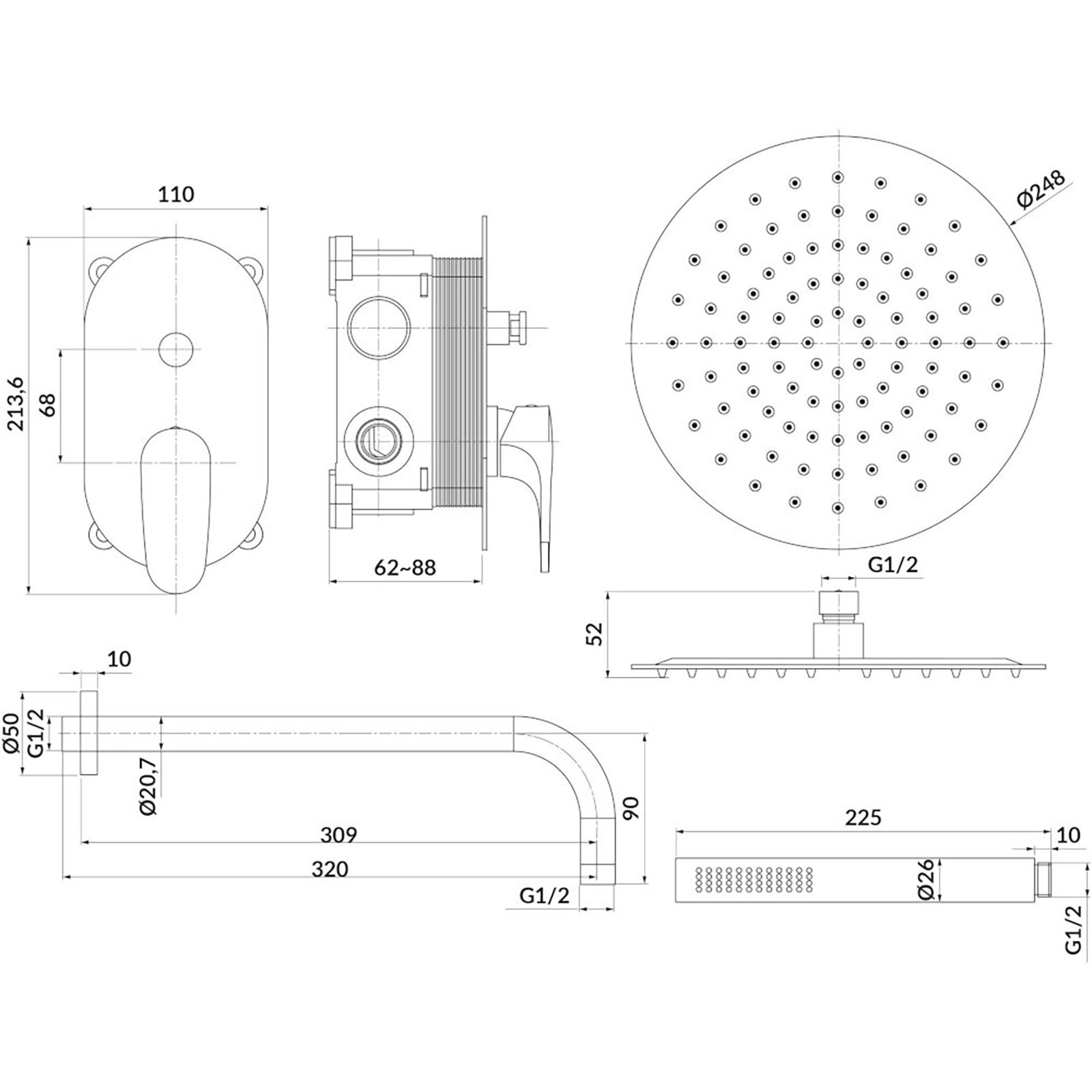 Der minimalistische und moderne Stil des Unterputz-Installationssets INVERTO ist ideal für Bäder dieser Art. Das INVERTO-Set enthält: eine Wannen- und Duscharmatur, eine SLIM-Edelstahl-Regenbrause mit einem Durchmesser von 25 cm (0,2 cm) und einer Cersanit EasyCLEAN-Silikonbeschichtung, einen 1-Funktions-Brausegriff mit einem Durchmesser von 2,4 cm, einen 150 cm langen PVC-Brauseschlauch (WRAS-geprüft) und eine 75 cm lange Schiebestange (Edelstahl) mit Schiebegriff und abgewinkeltem Anschluss. Der verdeckte Teil der Armatur ist eine moderne Lösung in Form eines Kastens, der einfach zu installieren und auszutauschen ist. Das Produkt wird mit einer 12-Jahres-Garantie auf den Körper, einer fünfjährigen Garantie auf den Kopf und einer zweijährigen Garantie auf den Rest der Dusche geliefert. Ein zusätzlicher Griff mit einer modernistischen Form in Gold ist im Lieferumfang enthalten.