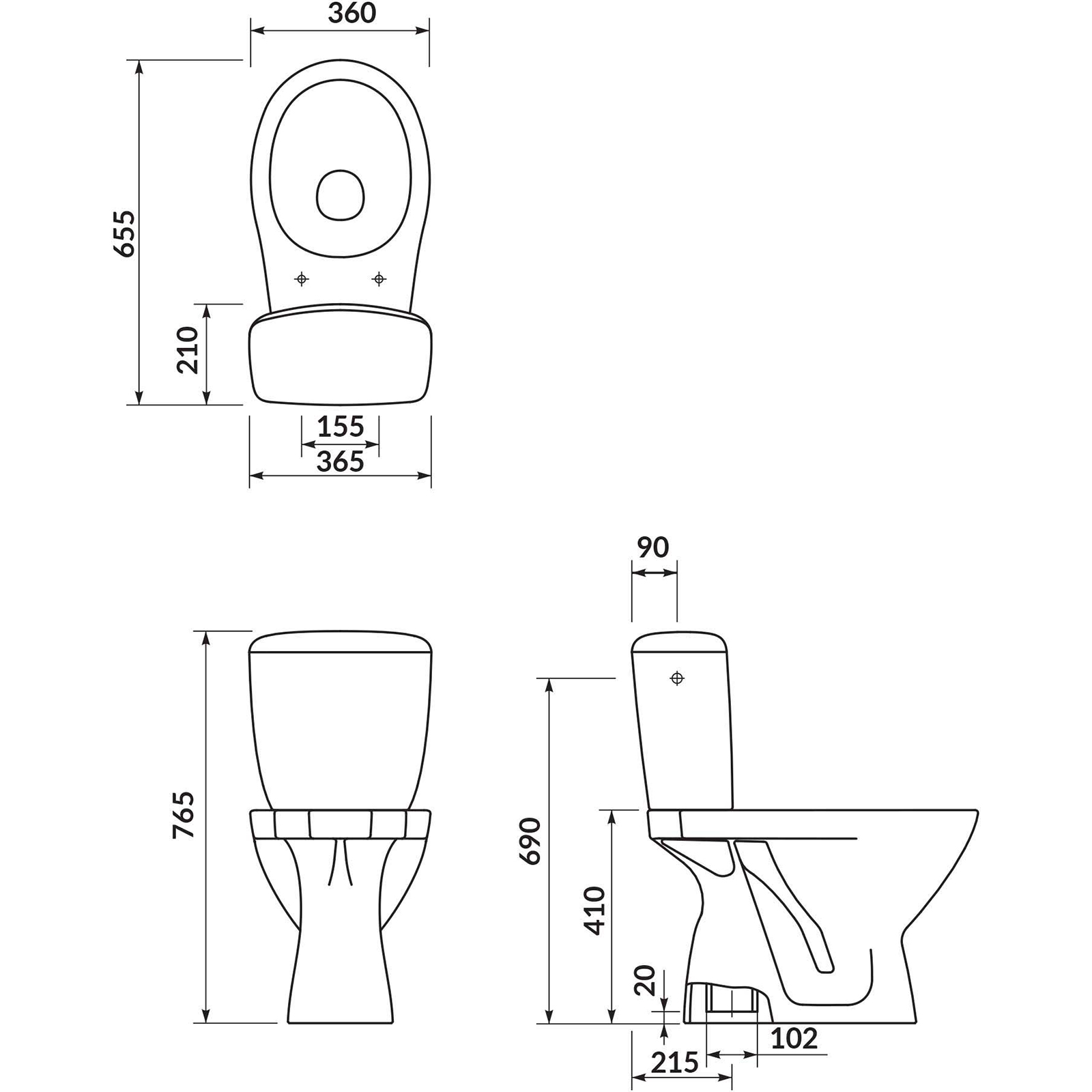 - Durchmesser des Ablaufs: 102mm - Spülkasten: