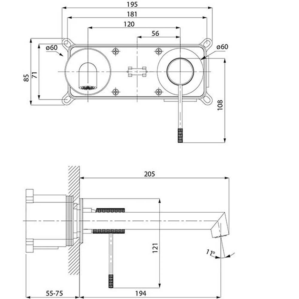 Waschbeckenarmatur wandmontiert ZEN mit gebürstetem Kupfergehäuse