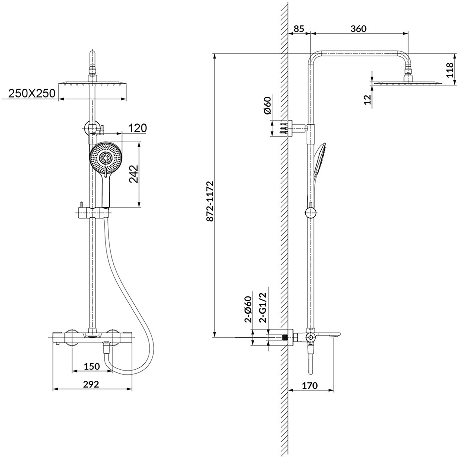 - Funktionen des Duschkopfes: RAIN & MASSAGE, MASSAGE, RAIN