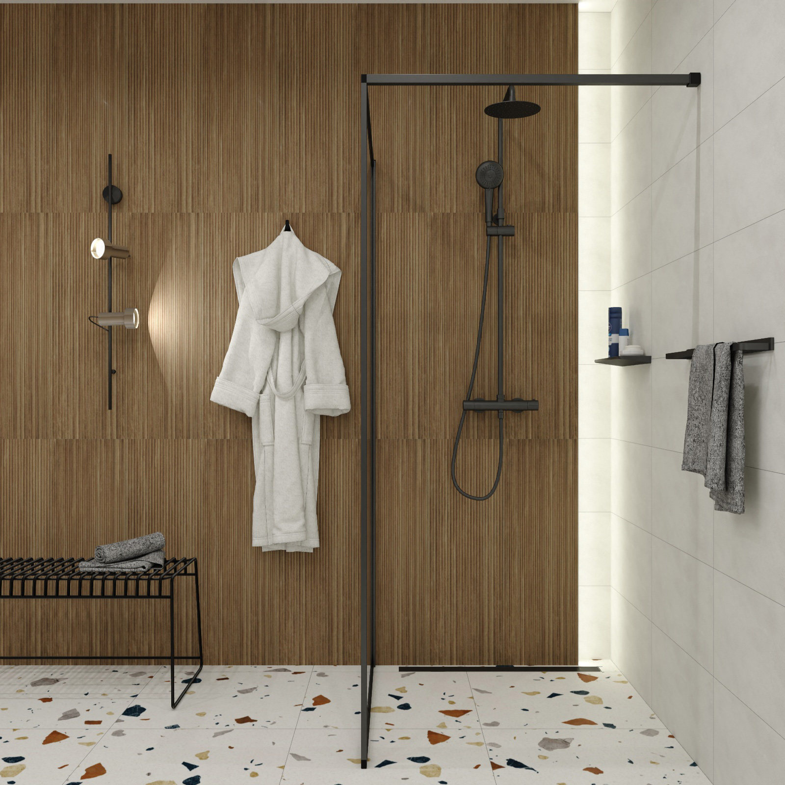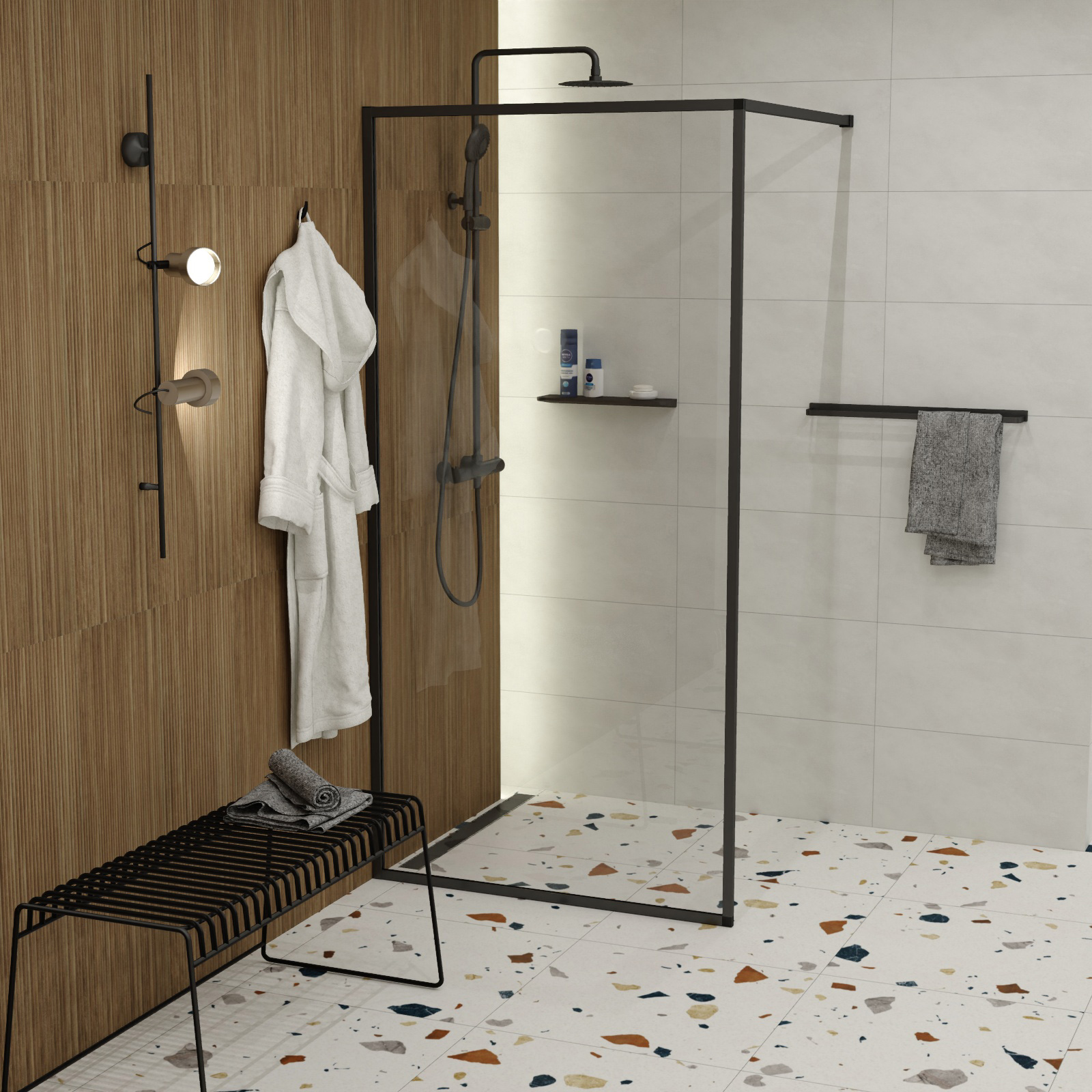 LARGA begehbare Duschabtrennung schwarz 100x200 transparentes Glas.