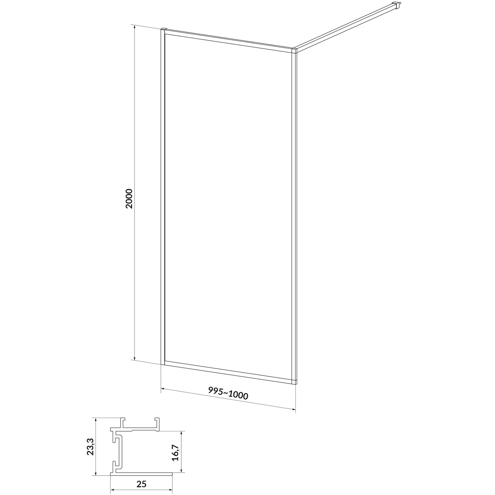 CERSANIT WALK-IN Duschkabine LARGA schwarz 100x200 transparentes Glas S932-139