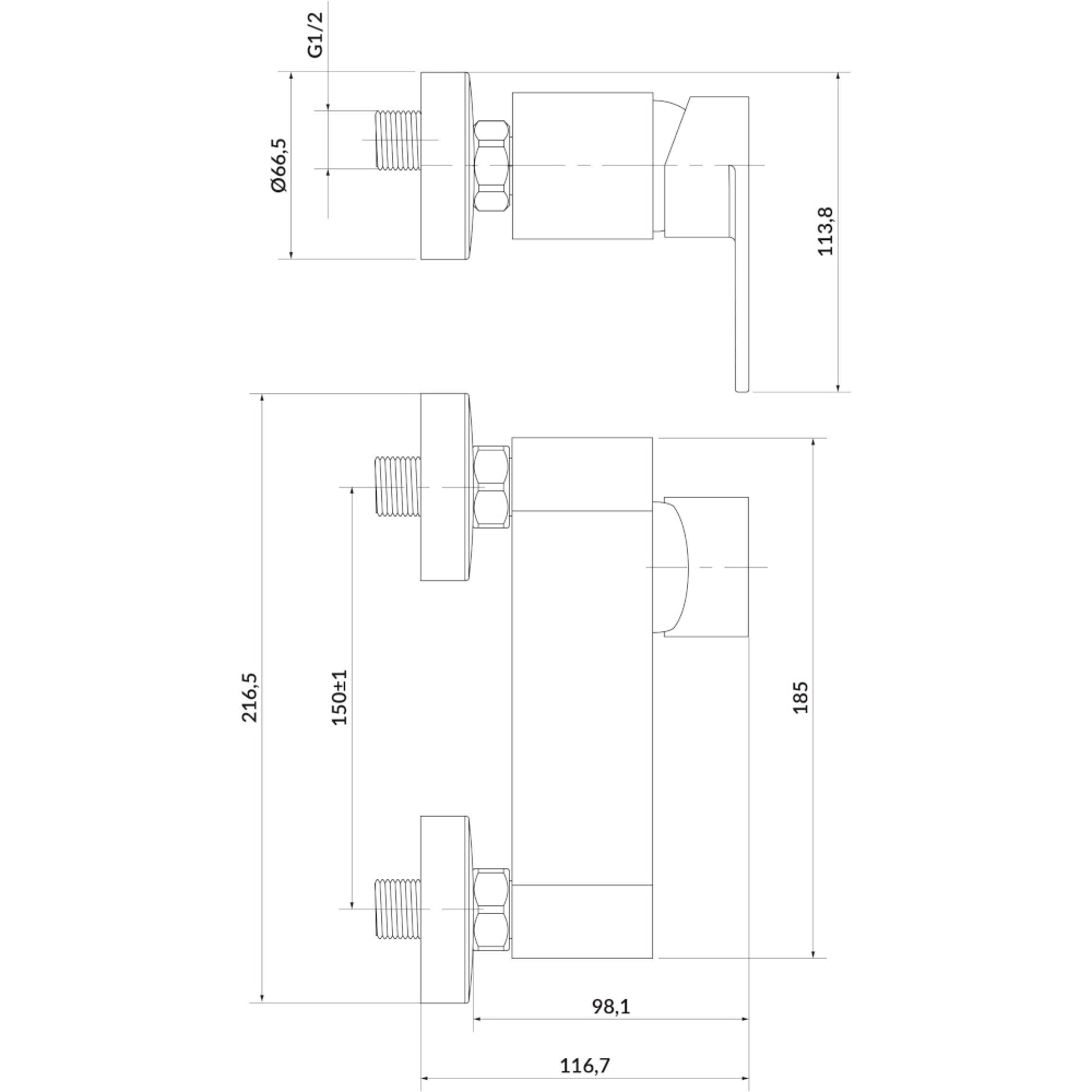 CERSANIT Wand-Brausebatterie ELIO chrom S951-032