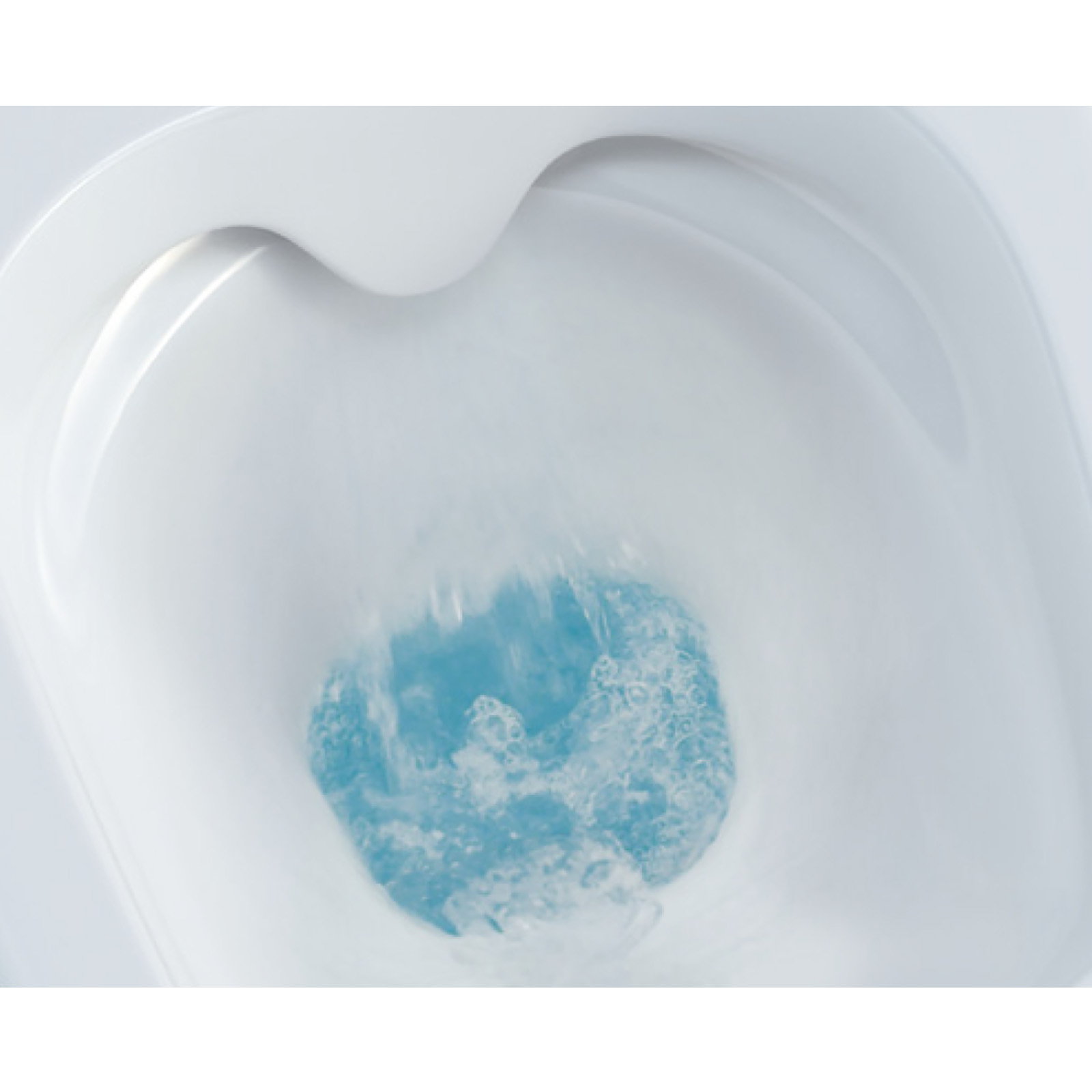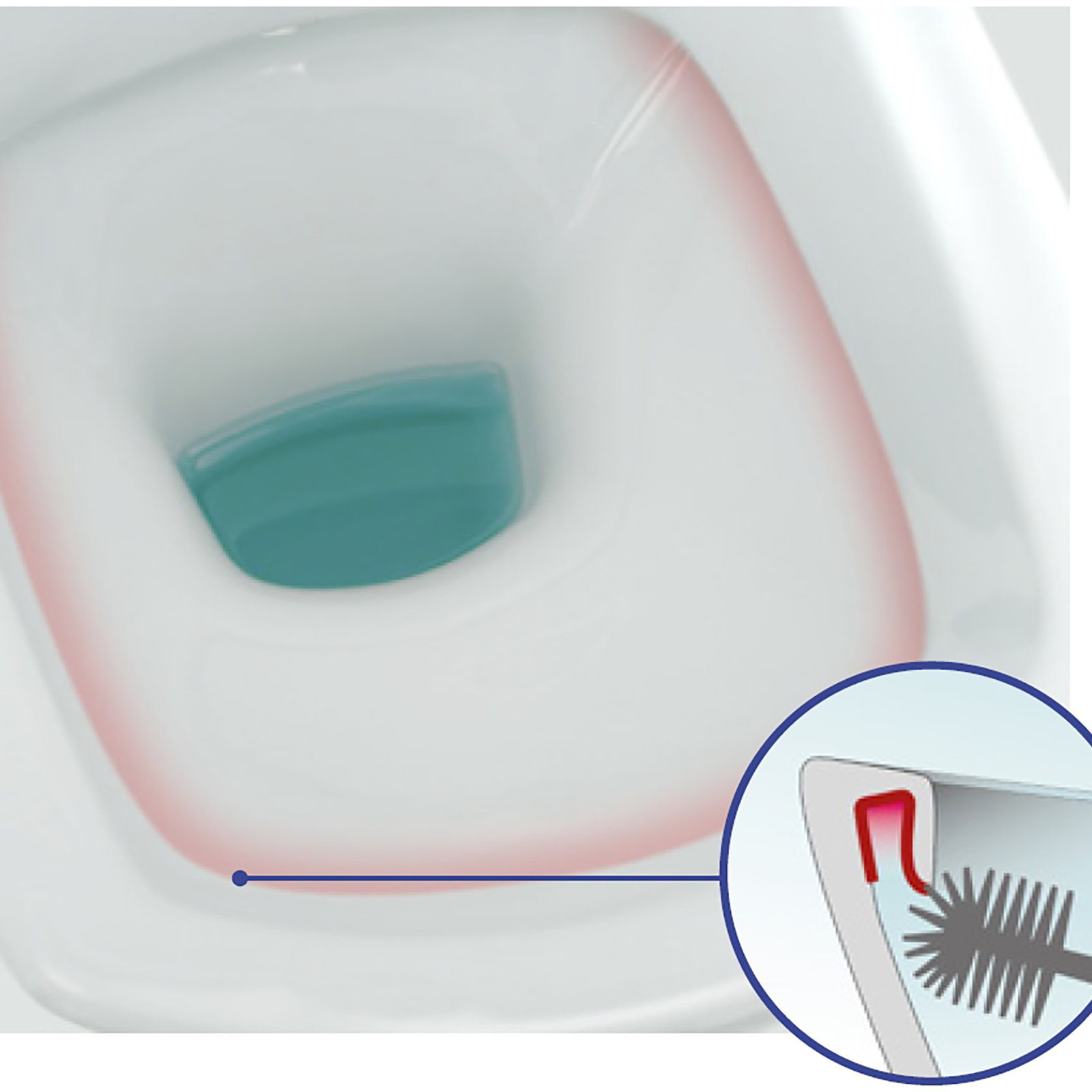 Eine Schüssel mit innovativer CleanOn-Technologie®, dank der die Toilette länger sauber und hygienisch bleibt. Die Form der Düse wurde in eine ergonomischere und gebogenere Form geändert, damit das Wasser mit größerer Kraft aus der Düse abfließen kann – sie reinigt effektiv alle Innenflächen, reduziert das Wachstum von Bakterien und hinterlässt die Schüssel sauber und frisch.