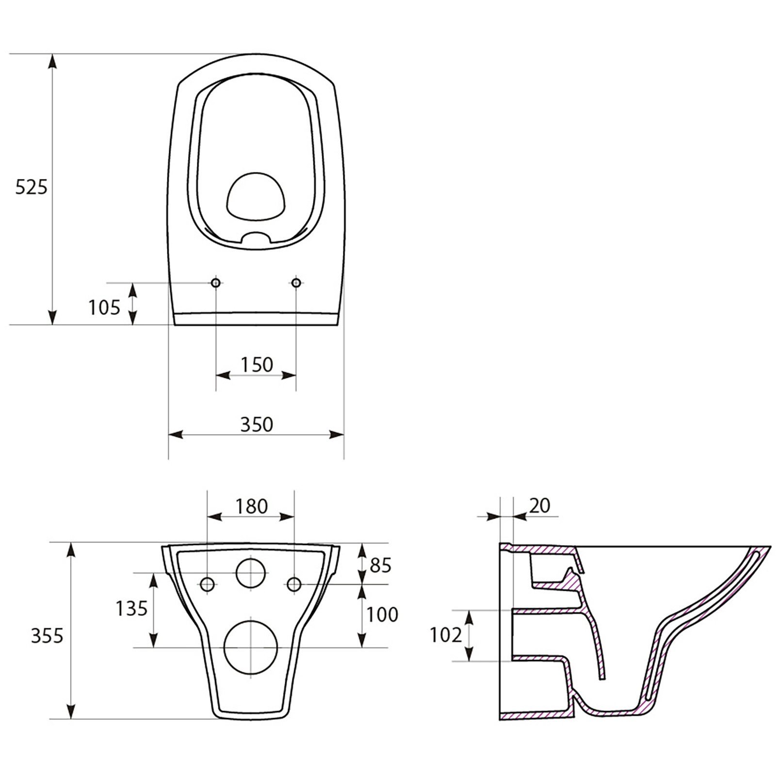 Die wandhängende Schale CARINA nutzt die innovative CleanOn-Technologie. Durch das Fehlen eines Kragens kann das Wasser über die gesamte Innenfläche der Schüssel fließen, so dass sie immer sauber und frisch bleibt. Das Fehlen eines Halsbandes bedeutet auch Platzmangel, wo sich Bakterien und Keime ansammeln. Das Modell ist für die wirtschaftliche Spülung von 3/5 l und 2,5/5 l geeignet und für den horizontalen Wasserablauf geeignet. Der Preis gilt für eine wandhängende Schale ohne Brett, aber es ist möglich, sie mit Brettern aus der CARINA-Serie zu vervollständigen.
