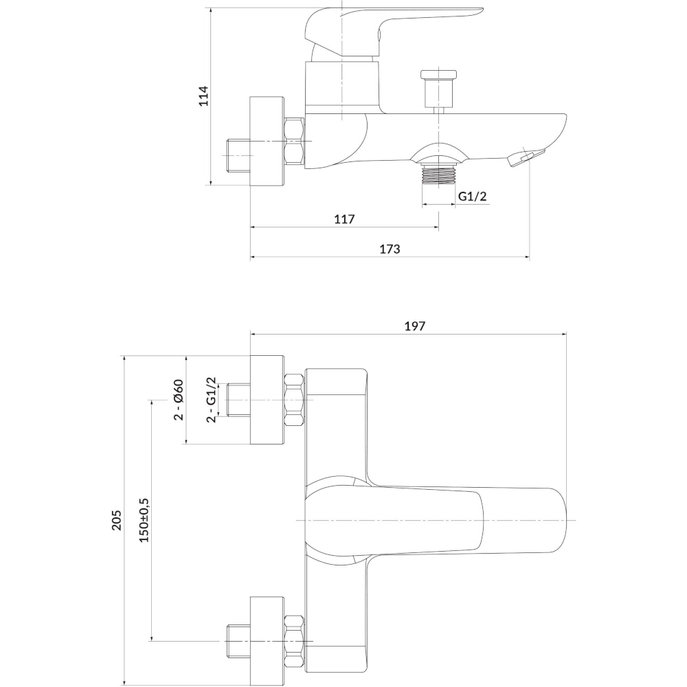 CERSANIT Wandmontierte Wannen- und Duscharmatur CITY chrom S951-344