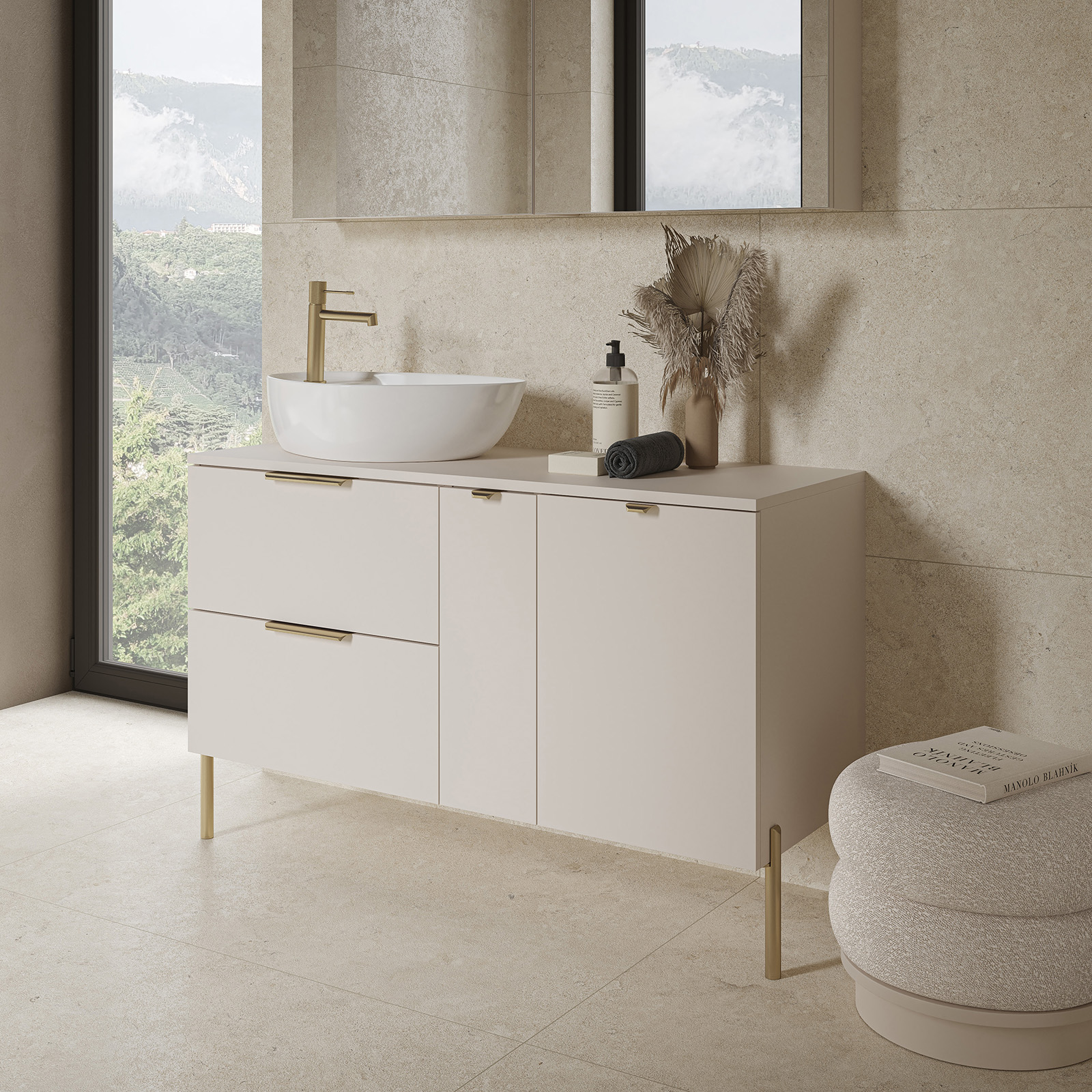 Ein innovatives Merkmal der Kollektion ist die Möglichkeit, ein Öffnungssystem zu wählen: klassischer Soft-Close mit Griff oder moderner Push-to-Open. Im Fall des Soft-Close-Systems kann der Kunde die Möbel zusätzlich personalisieren, indem er Möbelgriffe oder -beine in einer von drei stilvollen Varianten kauft: Chrom, schwarz matt oder gebürstetes Gold.