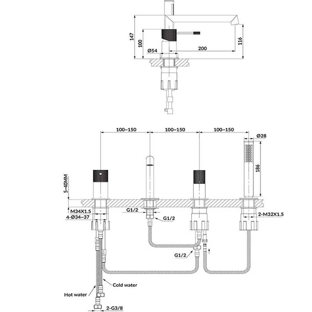 Die Armatur hat eine Messing-Duschbrause mit einem Durchmesser von 2,8 cm, die einen präzisen Wasserstrahl liefert. Die geriffelten Griffe verleihen Eleganz und erleichtern die Regelung der Wassertemperatur und -menge. Der 150 cm lange Metallduschschlauch sorgt für Komfort beim Duschen.