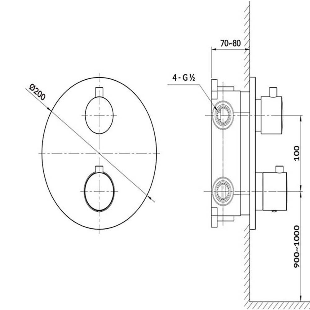 CERSANIT ZEN Unterputz-Thermostat für Badewannen und Duschen, Kasten Gun Metal S951-804