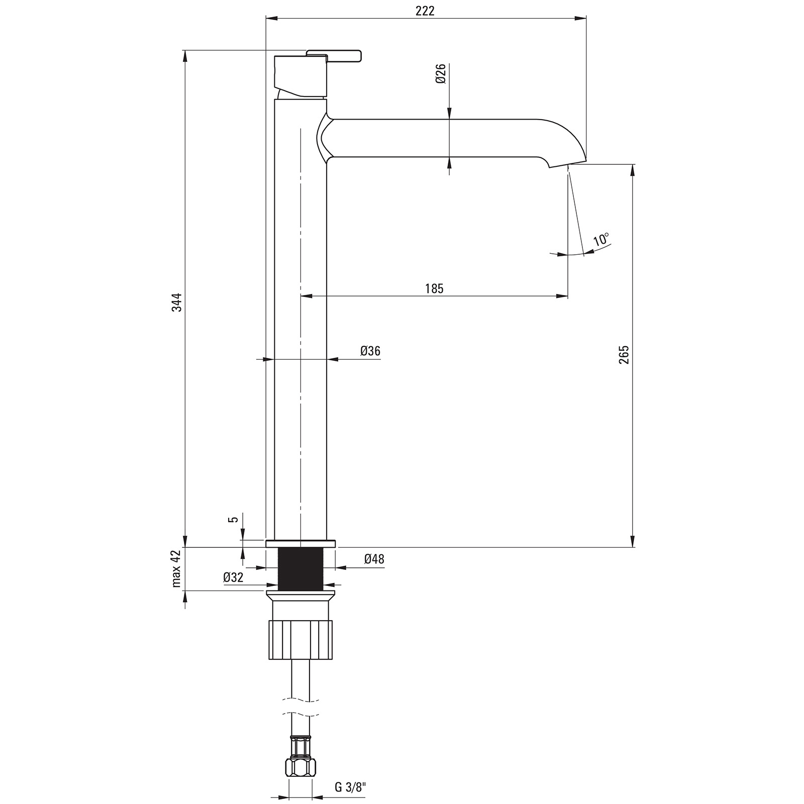 | Höhe der Armatur: | 344 mm |