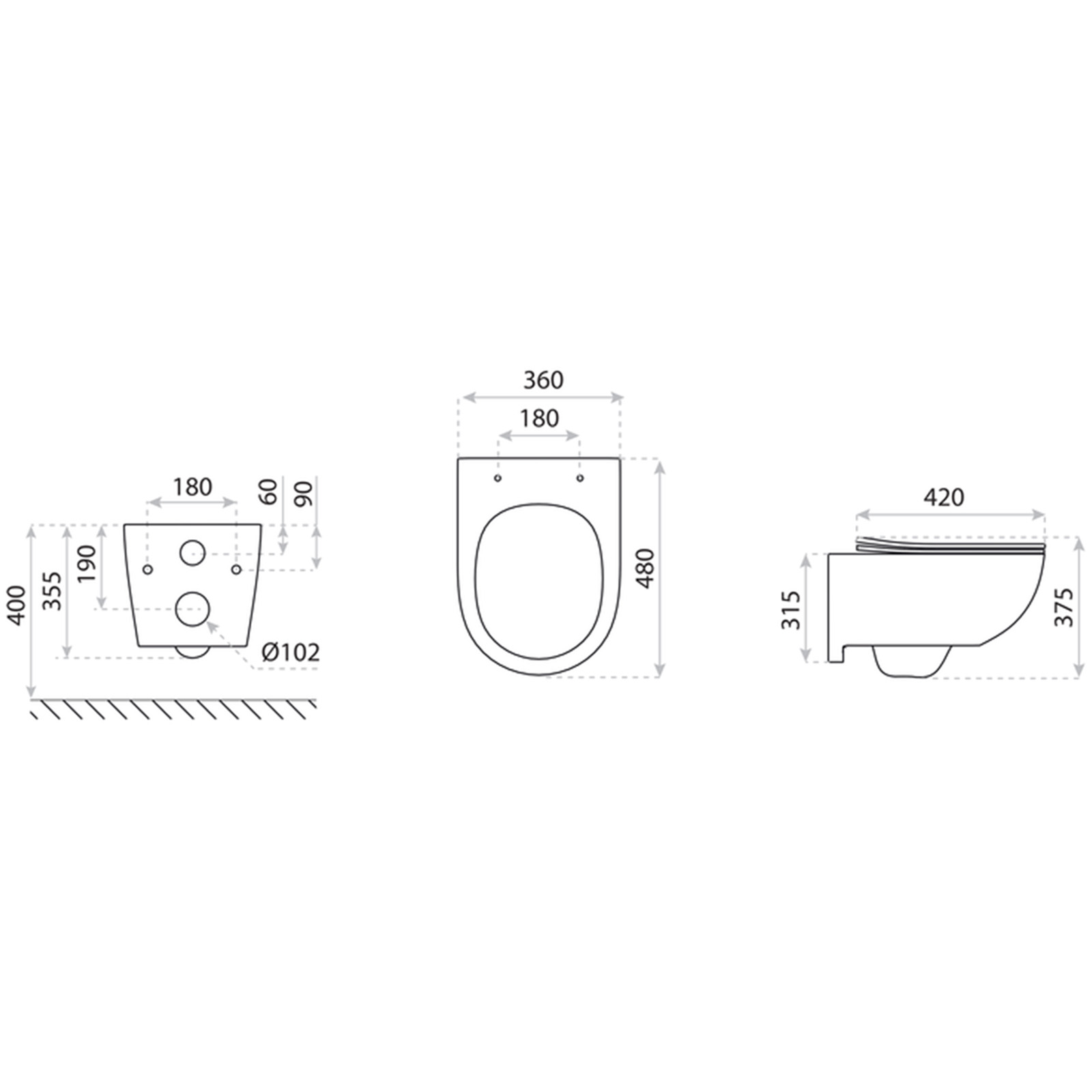 Wandhängende WC-Schüssel ERIE randlos mit Duroplast-Sitz weiß