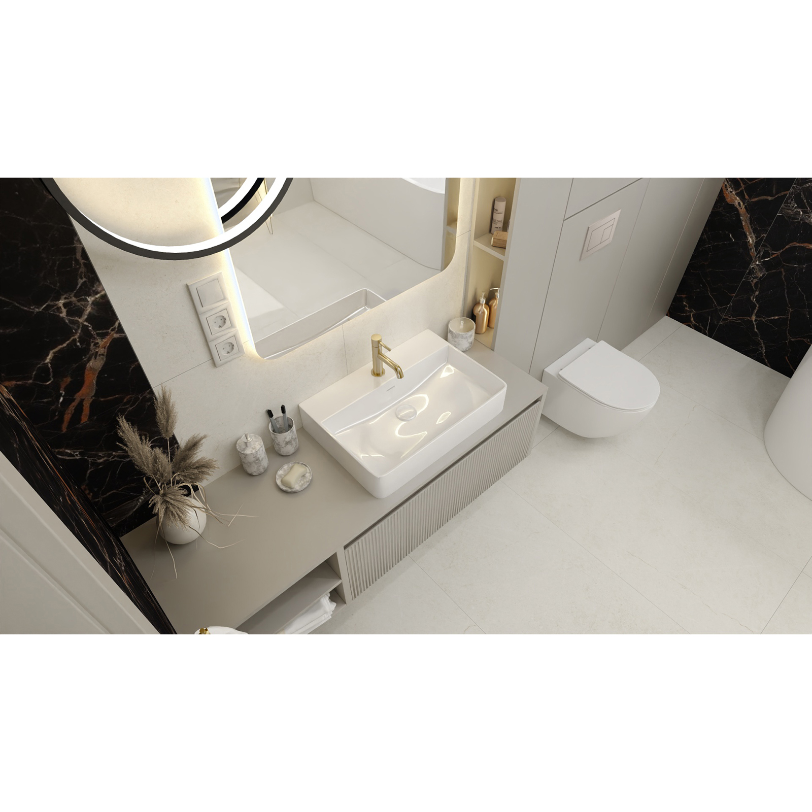 Hängeschale aus Duroplast-Platte im Badezimmer ist ein Element, das nicht nur das Erscheinungsbild dieses Raumes verändert, sondern auch Modernität und Funktionalität einführt. Das Aufhängen an der Wand verleiht dem Raum Leichtigkeit und eröffnet neue Gestaltungsmöglichkeiten. Die Shinto 2.0 Hängeschale nimmt viel weniger Platz ein als eine herkömmliche Standschale. Damit eignet sie sich ideal für kleine Badezimmer, in denen jeder Zentimeter kostbar ist. Dank des freien Zugangs zum Boden unter der Schüssel ist es viel einfacher, sie sauber zu halten. Es ist nicht erforderlich, schwer zugängliche Stellen zu waschen und zu pflegen.