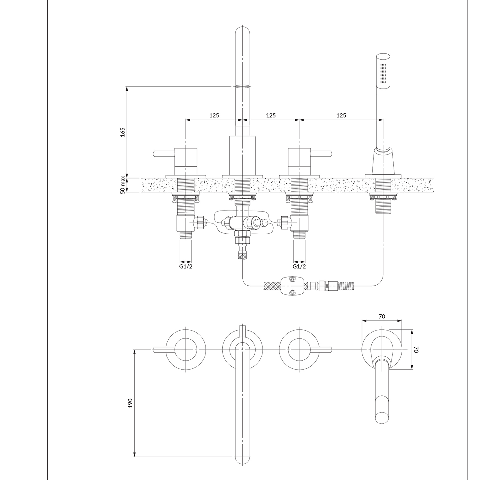 Badewannenhahn Y 4-Loch gebürstetes Graphit.