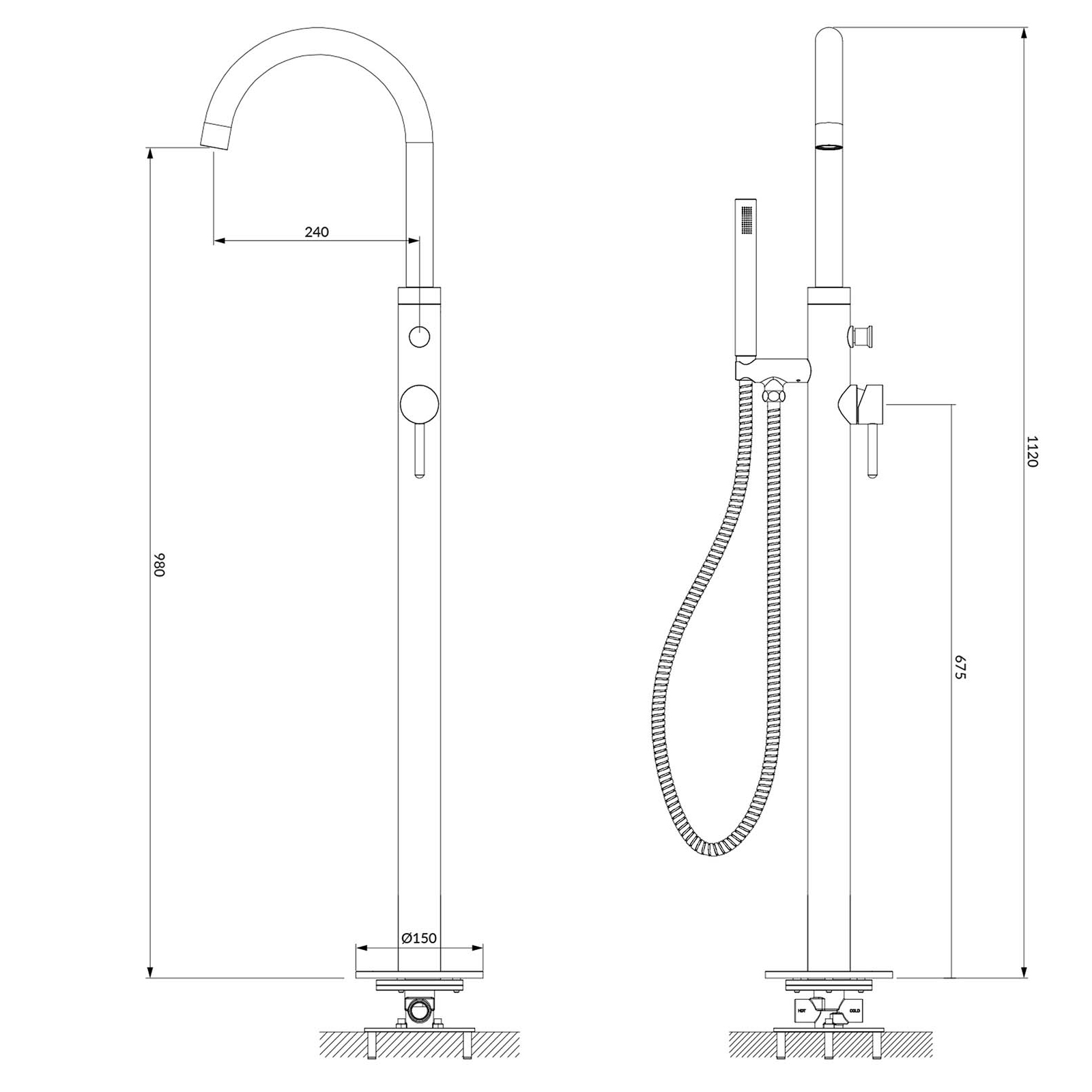 - Gesamthöhe des Wasserhahns: 112 cm