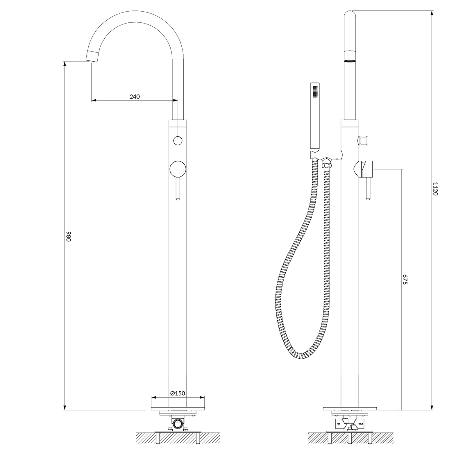 Badewannenhahn Y freistehend schwarz halbmatt.