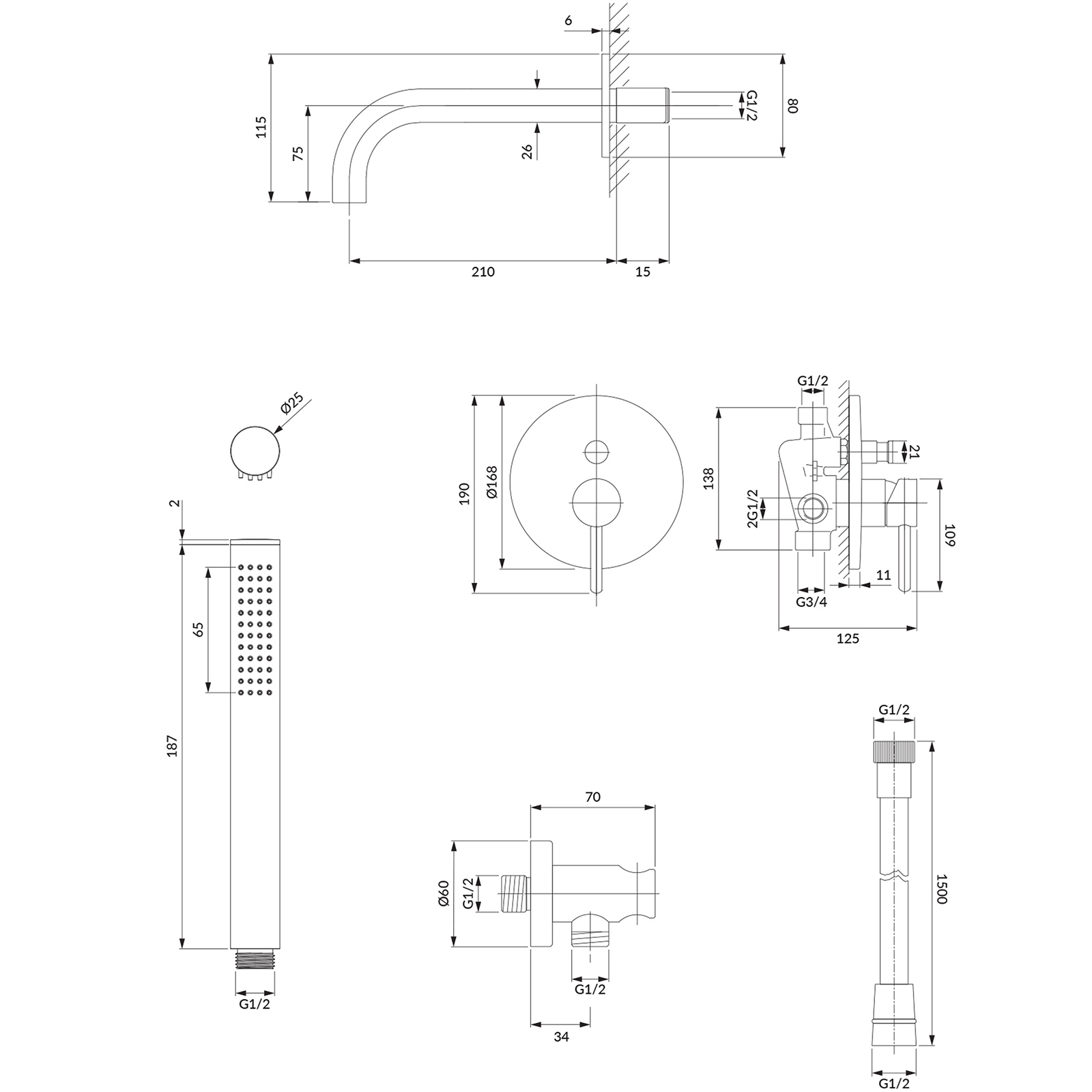 - versteckter Dusch- und Bademixer (Y1235CR),