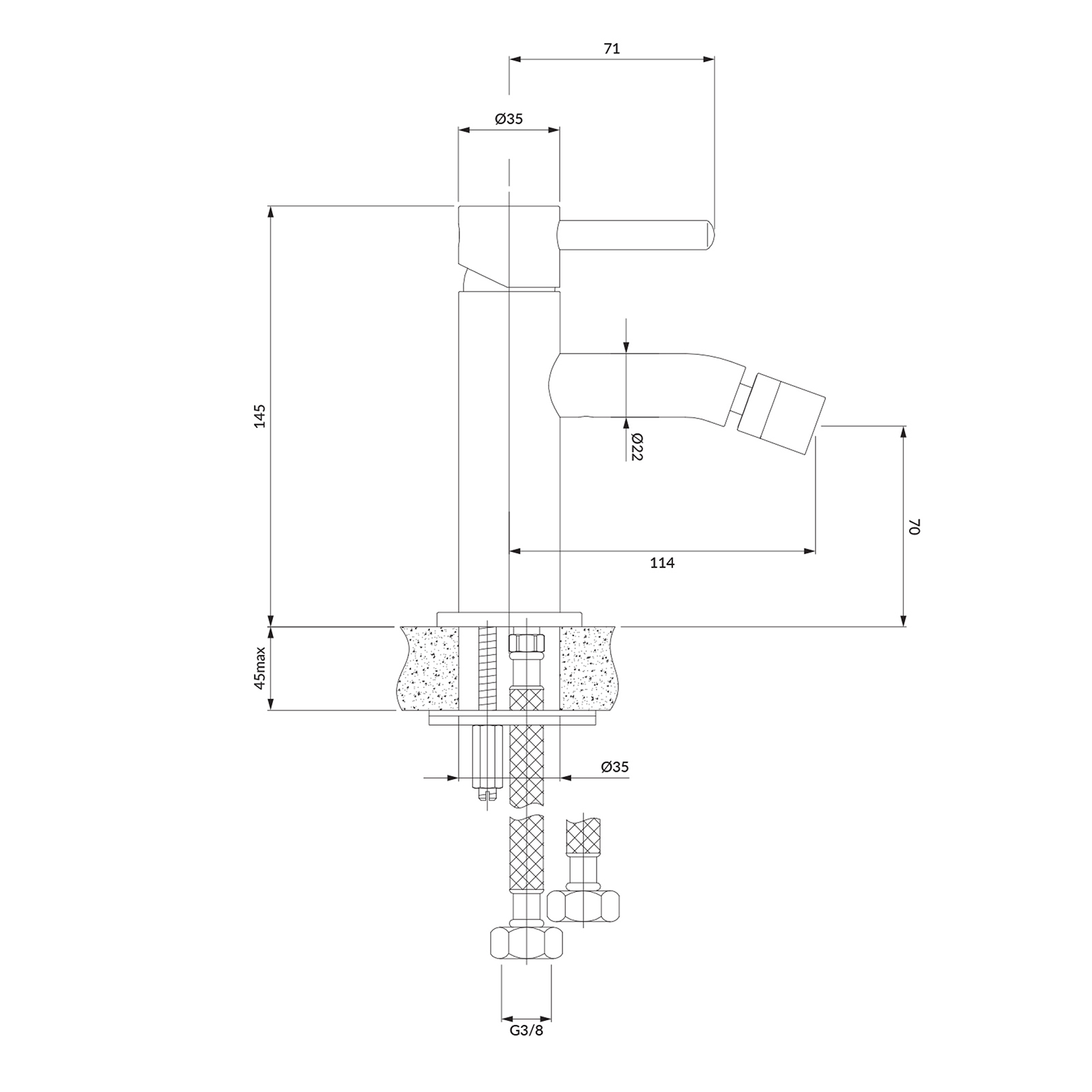 Bidet-Wasserhahn Y steht mit Graphit gebürstet.