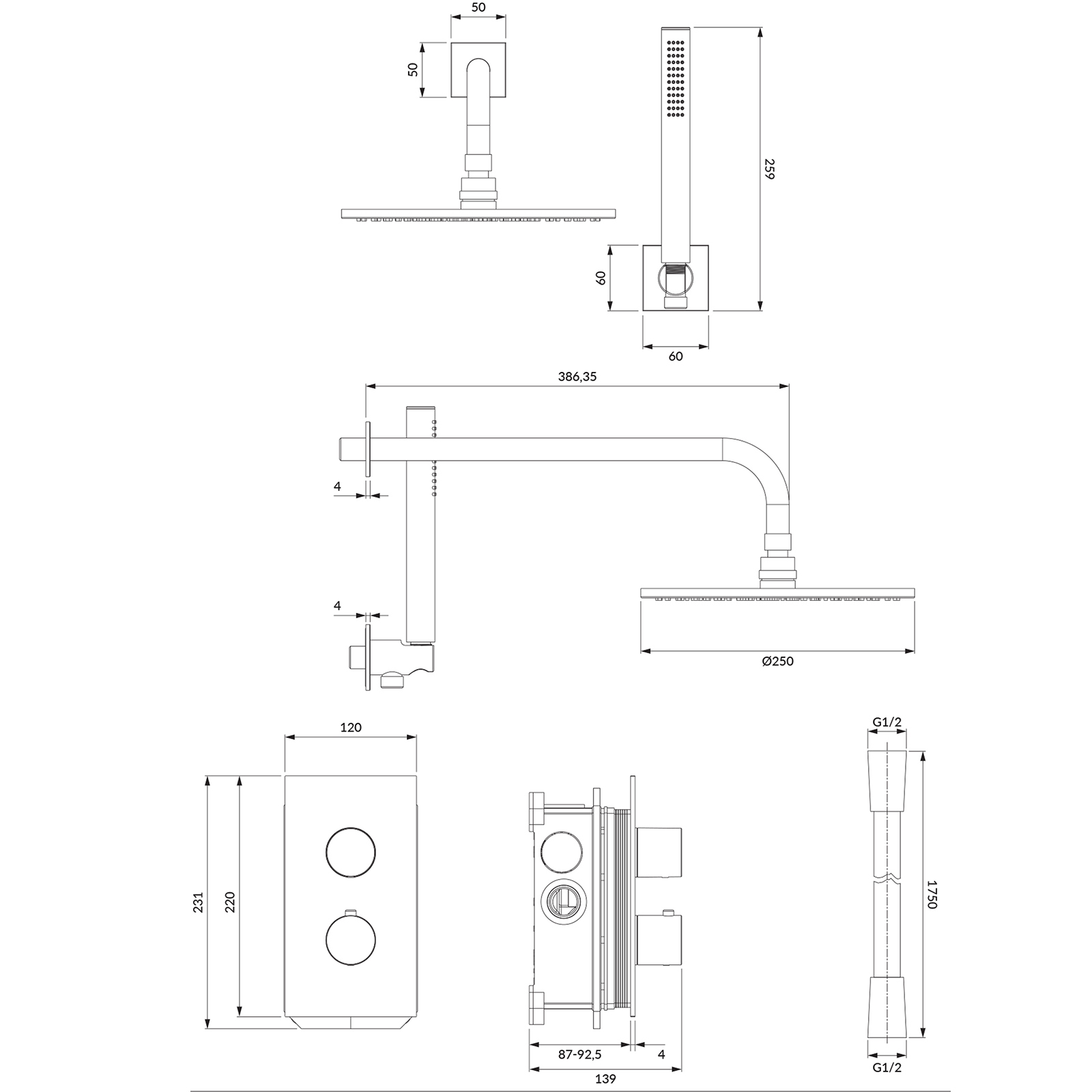 OMNIRES CONTOUR Eingebautes anthrazit-gebürstetes Duschsystem SYSCT11AT
