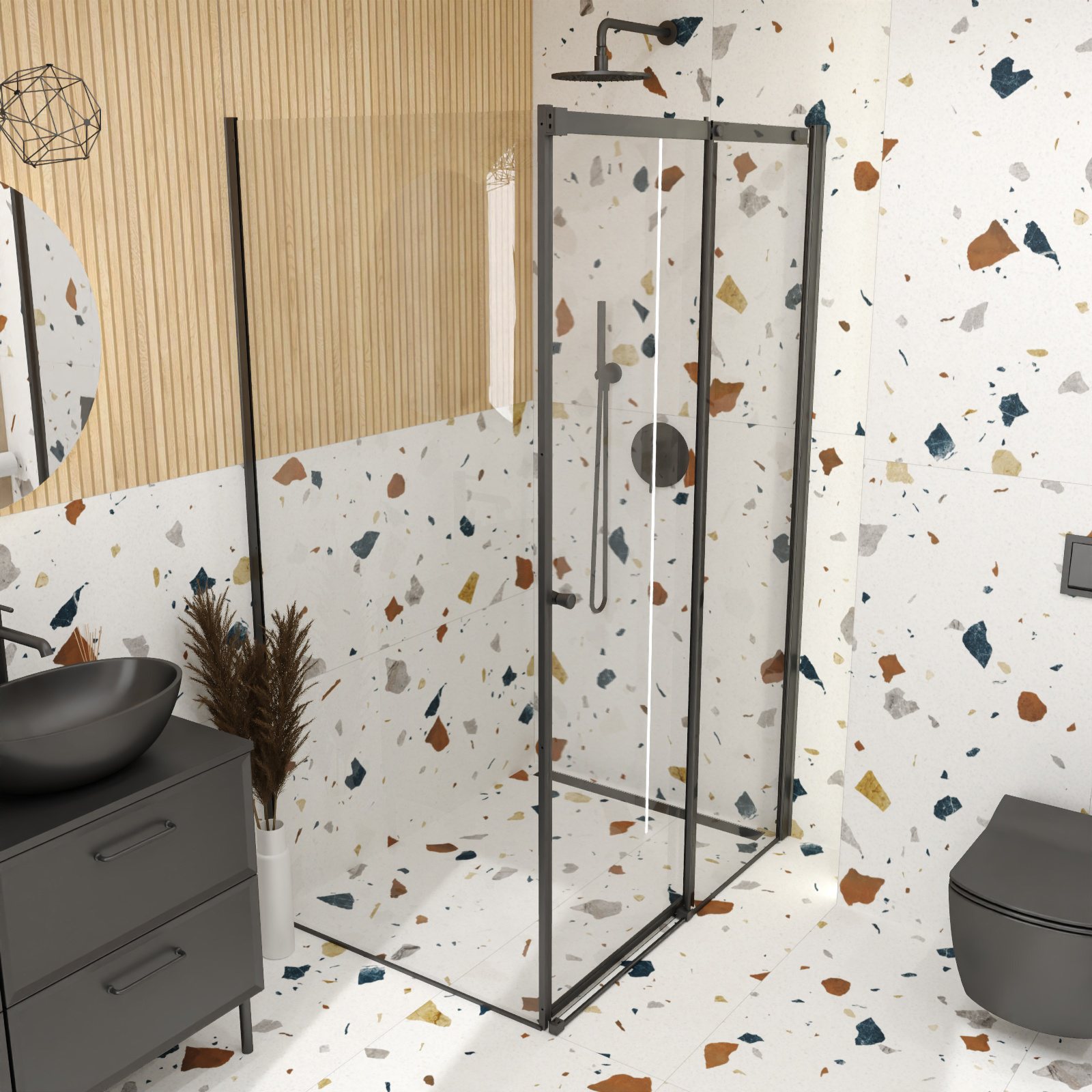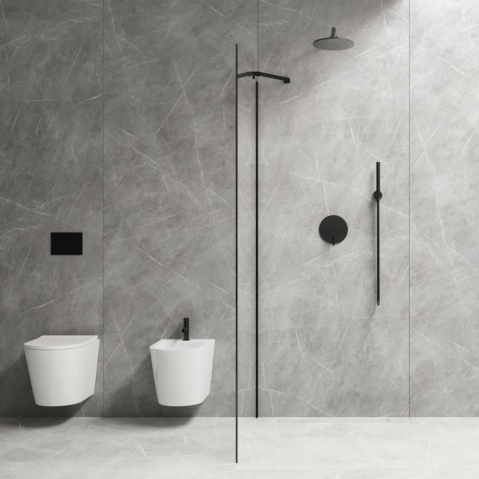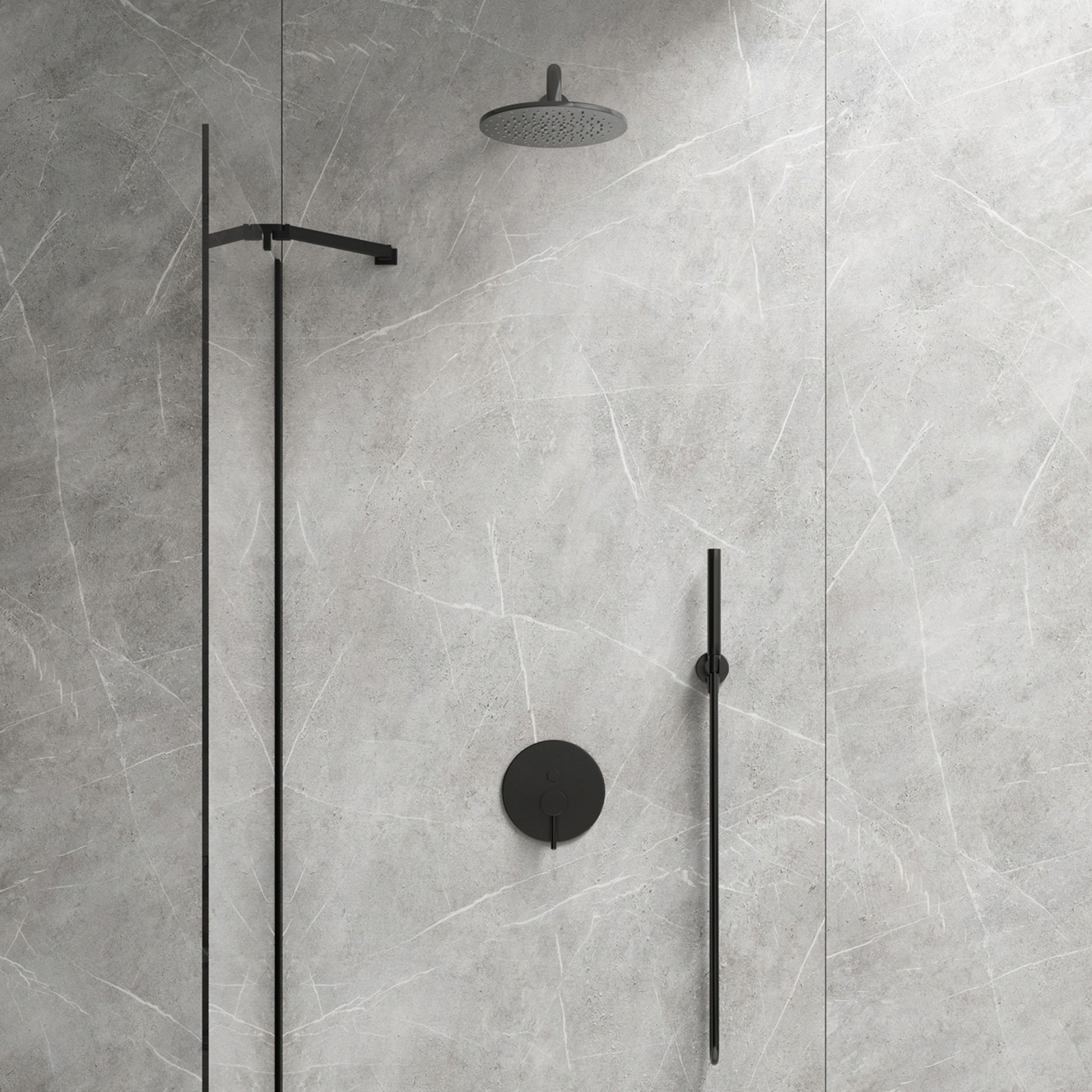 Duschsystem Y bündig montiert schwarz halbmatt.