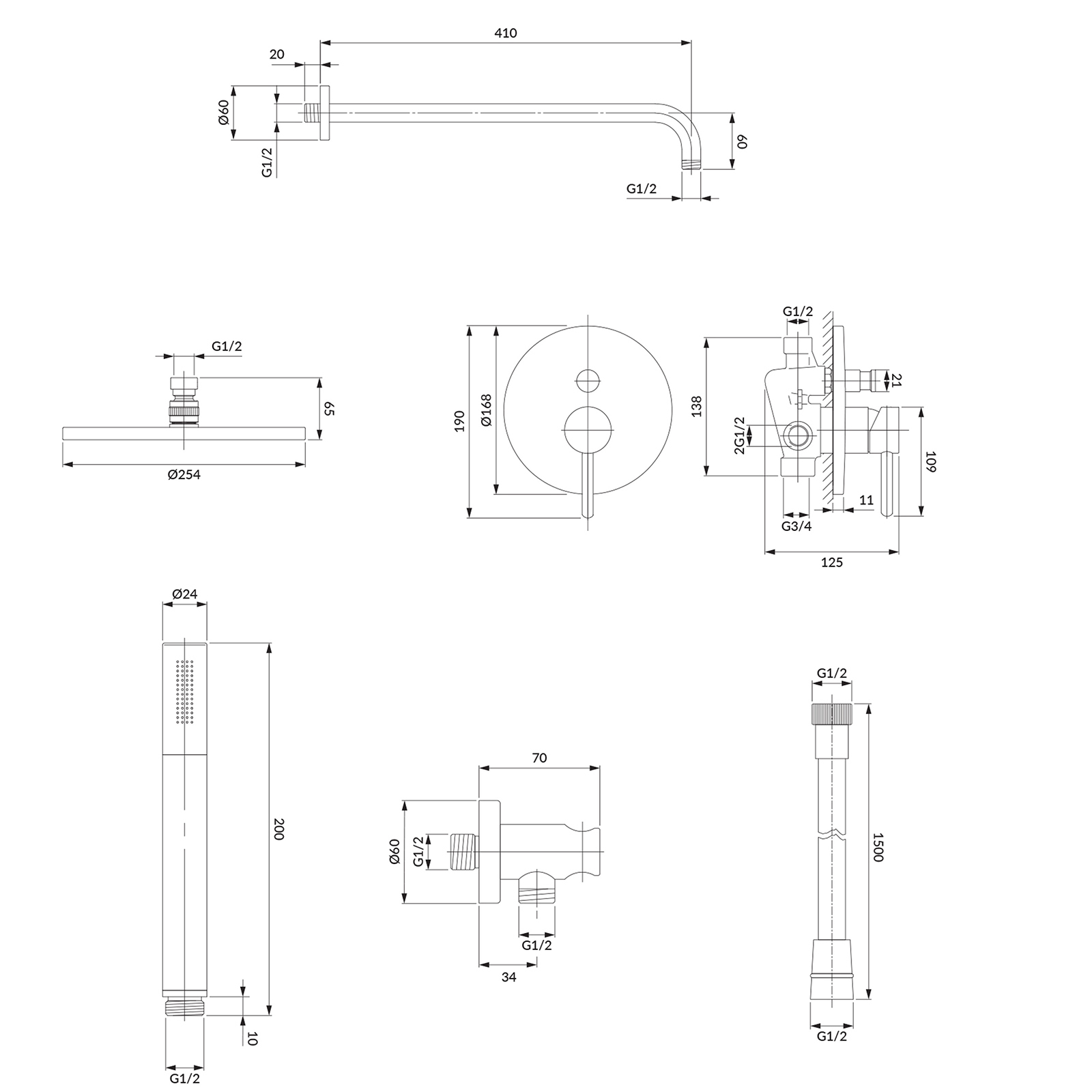 - verdeckter Dusch- und Badearmatur (Y1235BL)