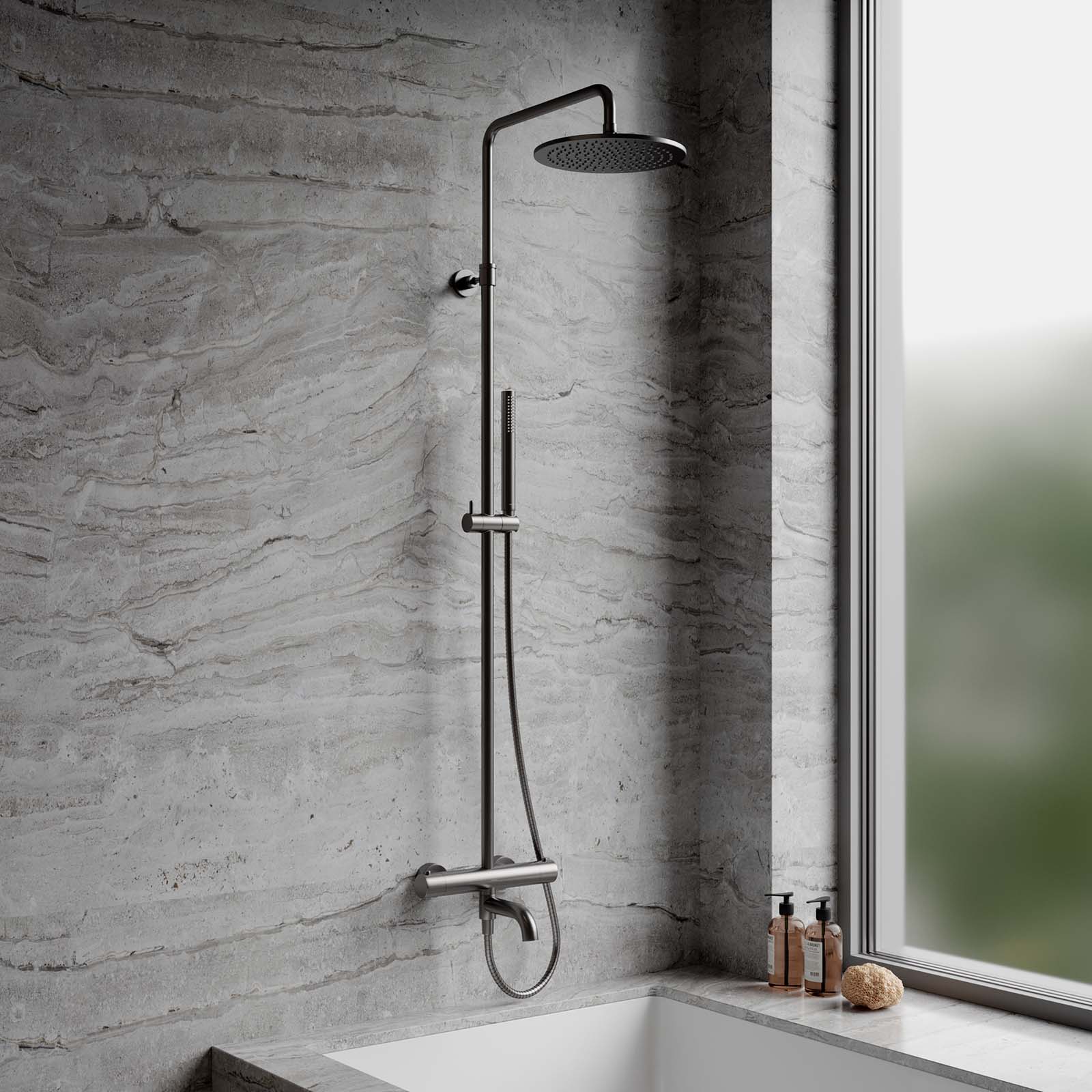 Thermostatisches Badewannensystem Y oberflächenmontiertes Graphitgepinselt.