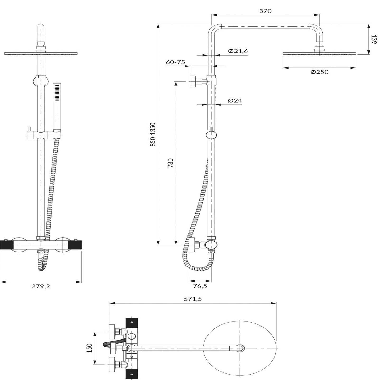 Thermostatisches Duschsystem CONTOUR Oberflächenmontierte