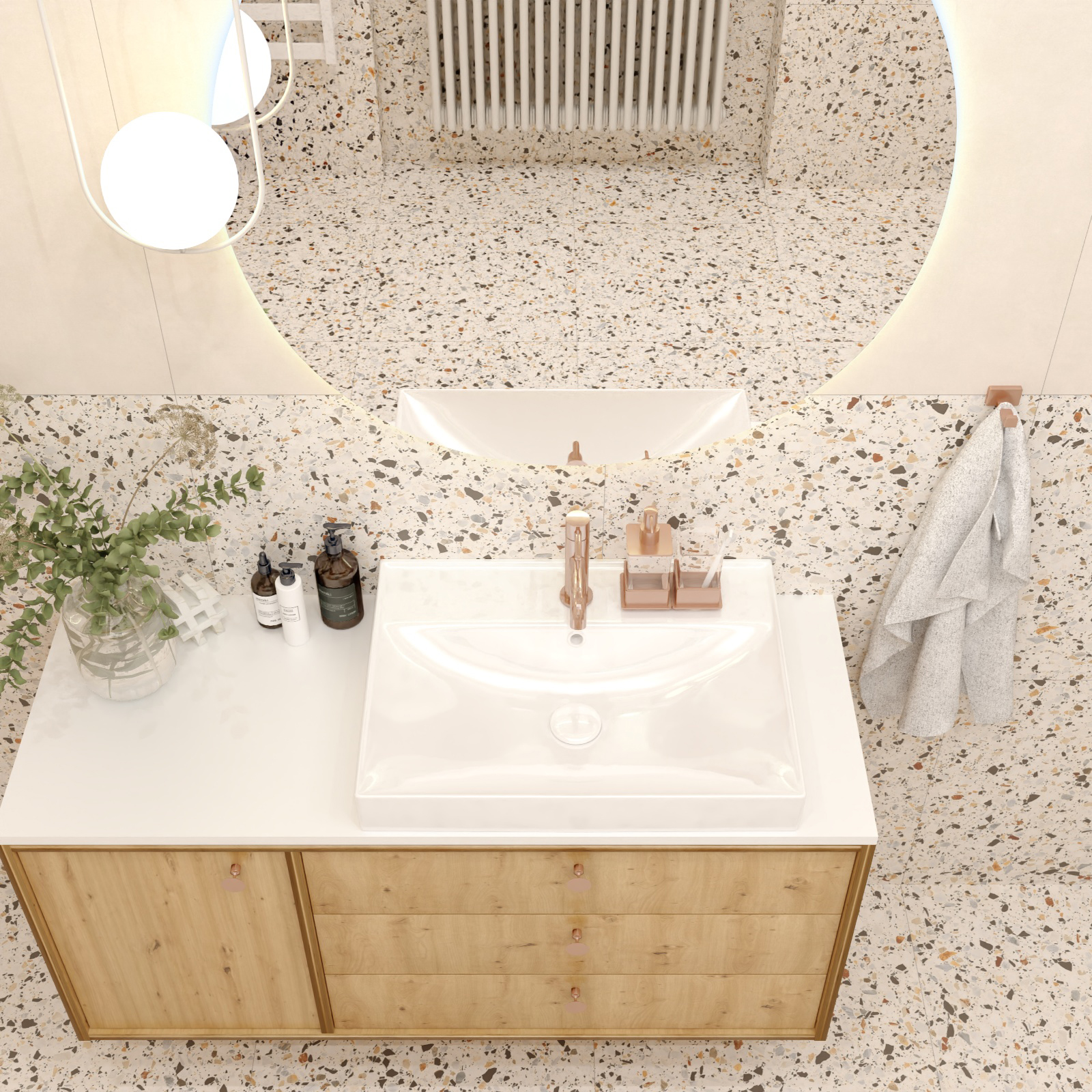 Kupfer ist ein edles Finish mit einer warmen rötlich-braunen Farbe und einer perfekt glatten, glänzenden Oberfläche. Die Beschichtung wird mit fortschrittlicher PVD-Technologie hergestellt.