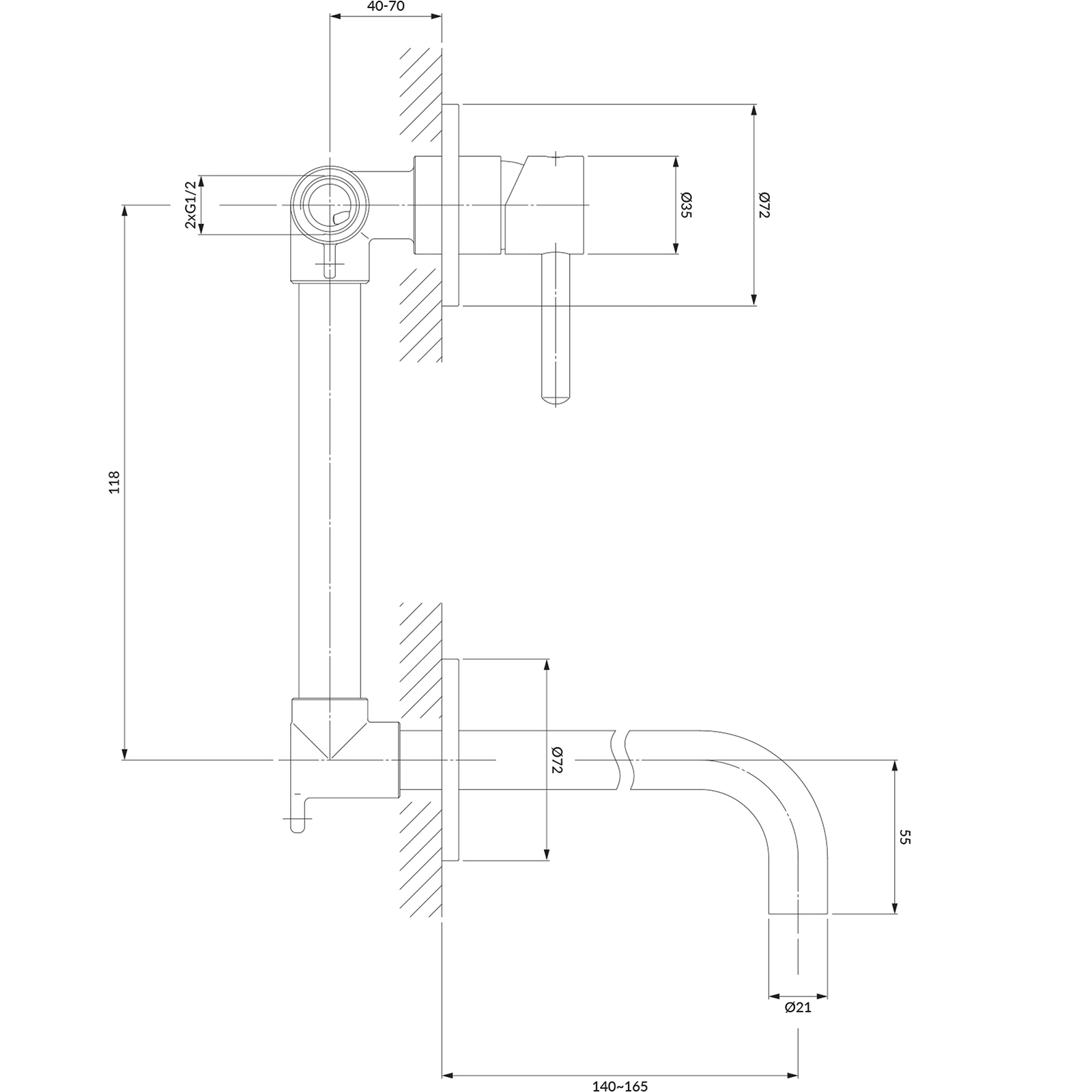 | Reichweite des Auslaufs: | 165 mm |