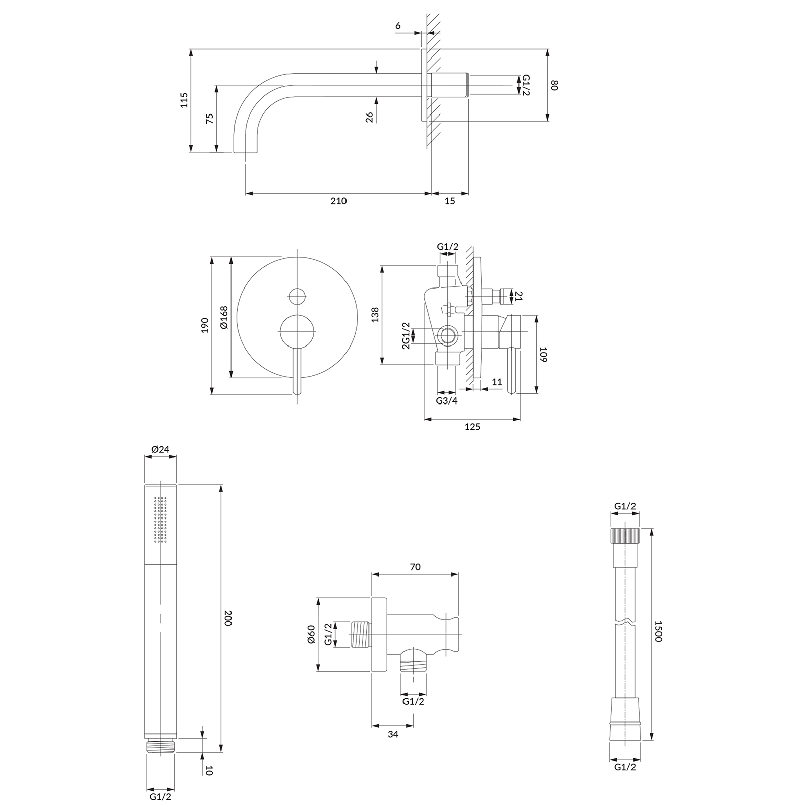 - verdeckter Dusch- und Bademixer (Y1235BL)