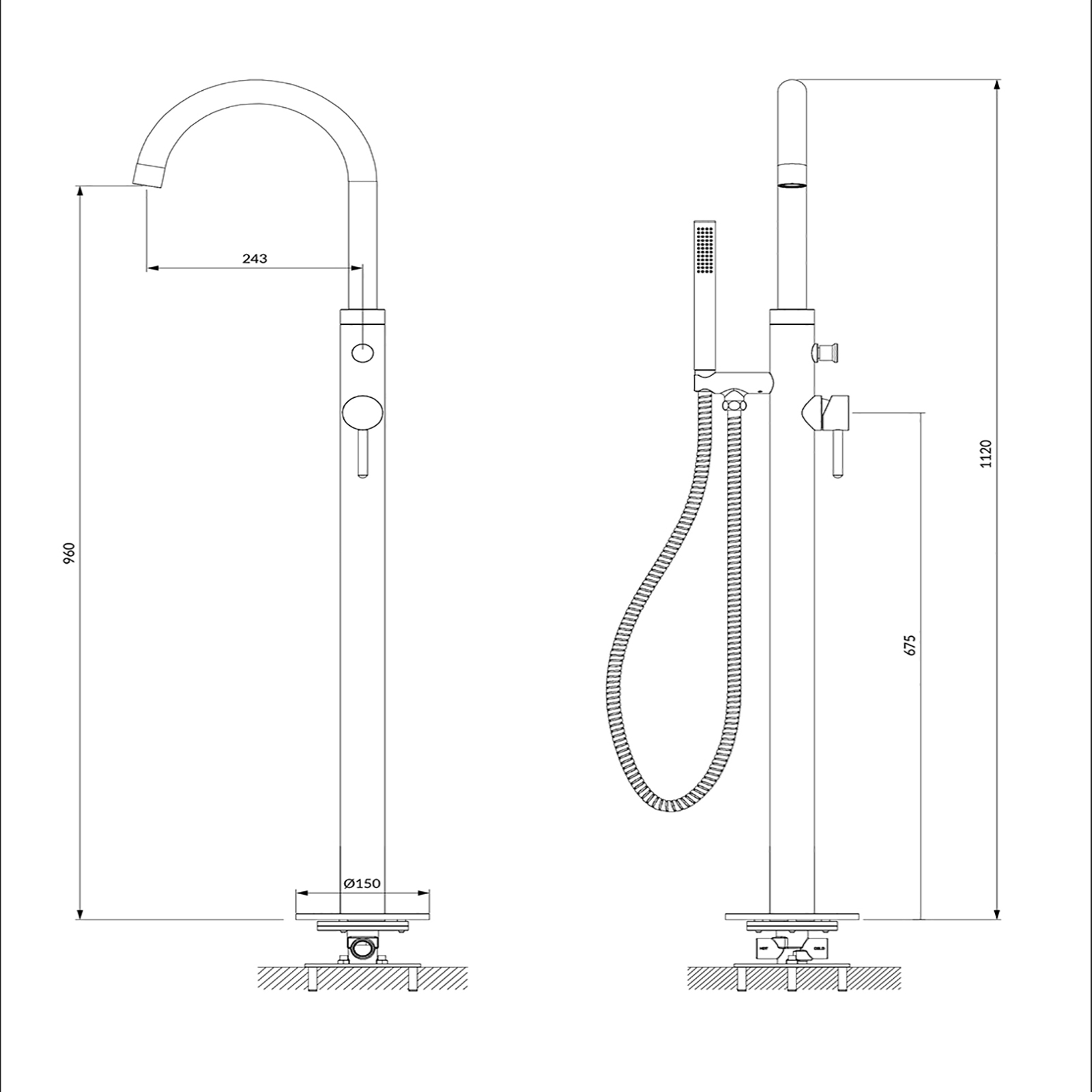 - Gesamthöhe des Wasserhahns: 112 cm,