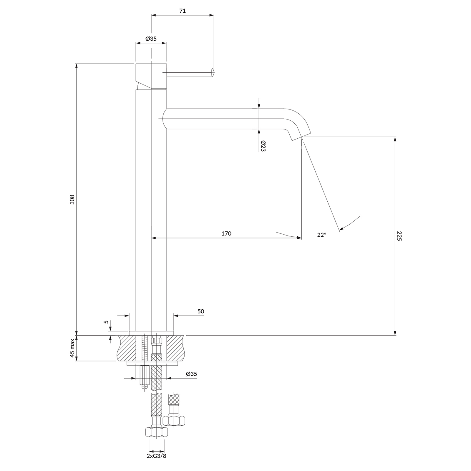 - Gesamtwasserhahnhöhe: 30,5 cm