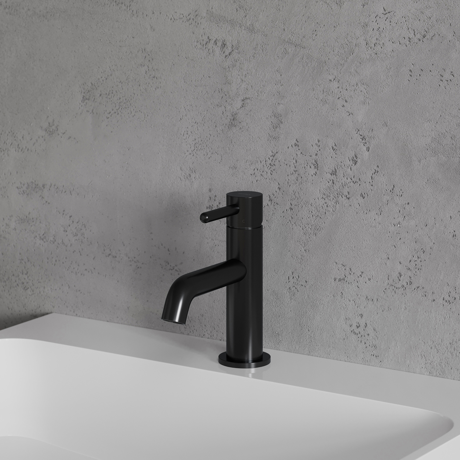 Wasserhahn im Waschbecken Y steht schwarz halbmatt.